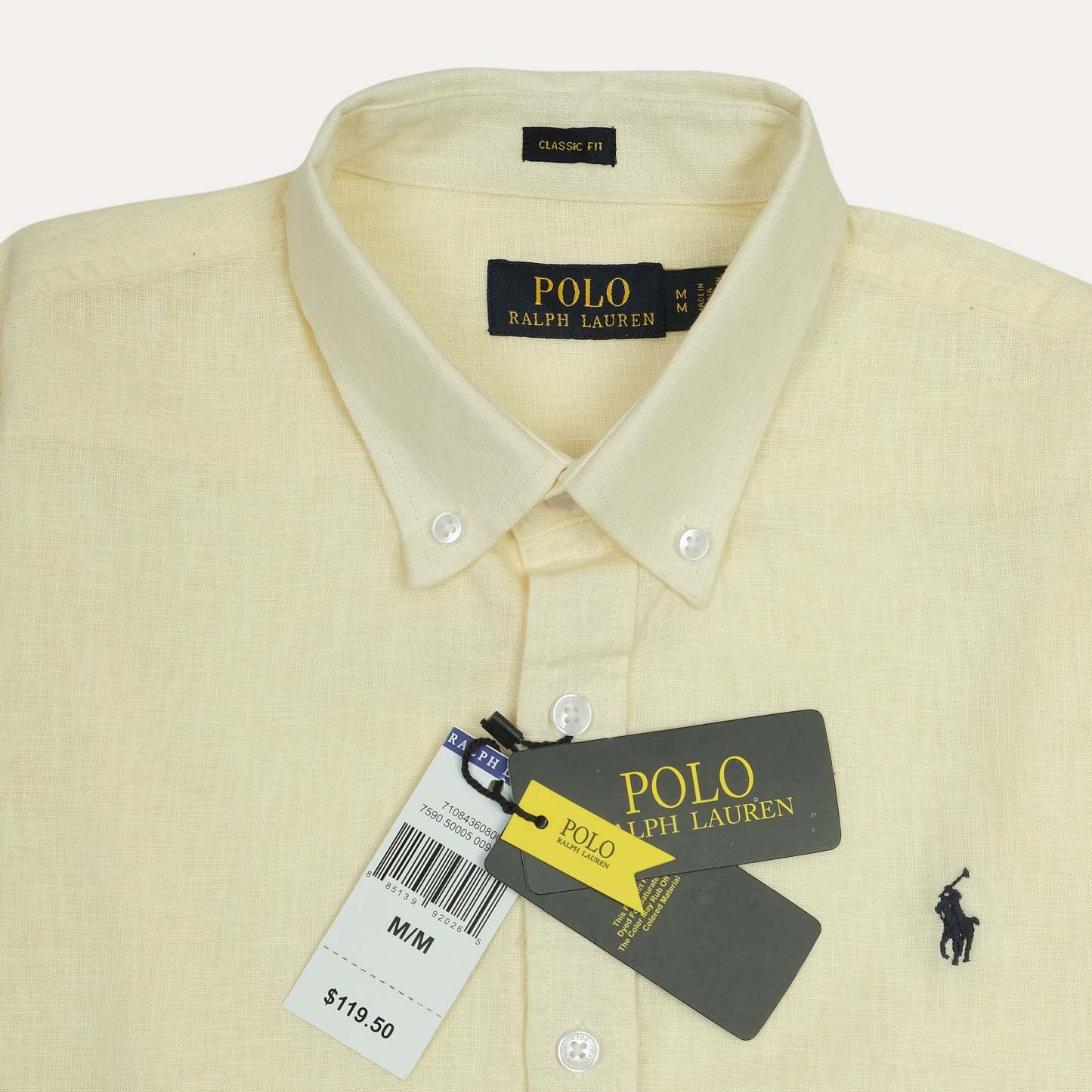 POLO Classic Fit Linen Button-Up Shirt in Soft Yellow