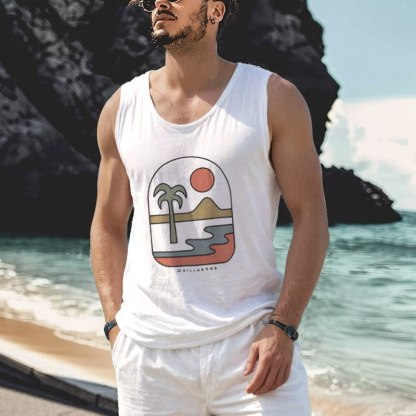 Men's Surf Hawaiian Beach Vacation Print Casual Vest Tank Top