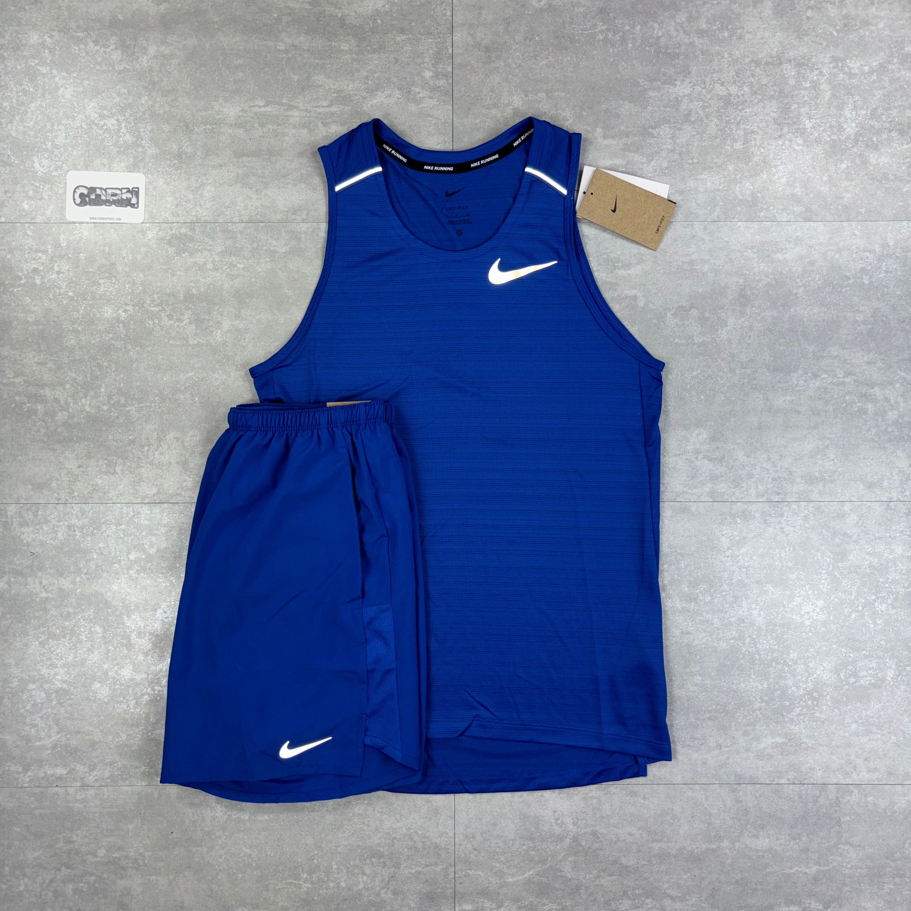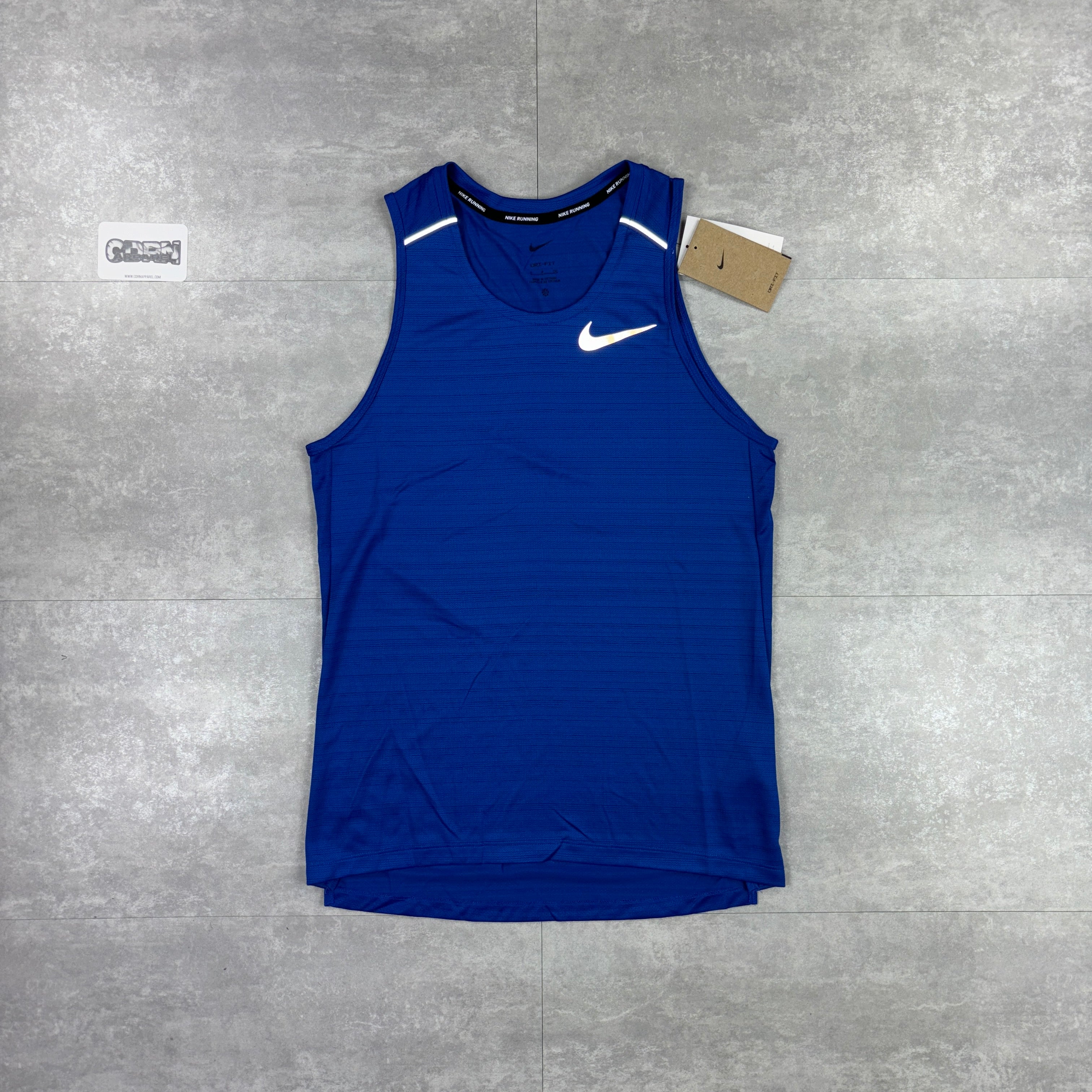 Step up your wardrobe in this men's Miler Vest from Nike. In a Royal Blue colourway, this standard-fit tee is made from breathable poly fabric with Dri-FIT tech to keep away sweat and keep you cool. It features a crew neckline, short sleeves and reflective details to keep you seen after dark. With a dropped hem for extra coverage. this running vvest is finished with the signature Swoosh logo to the chest. Machine washable.