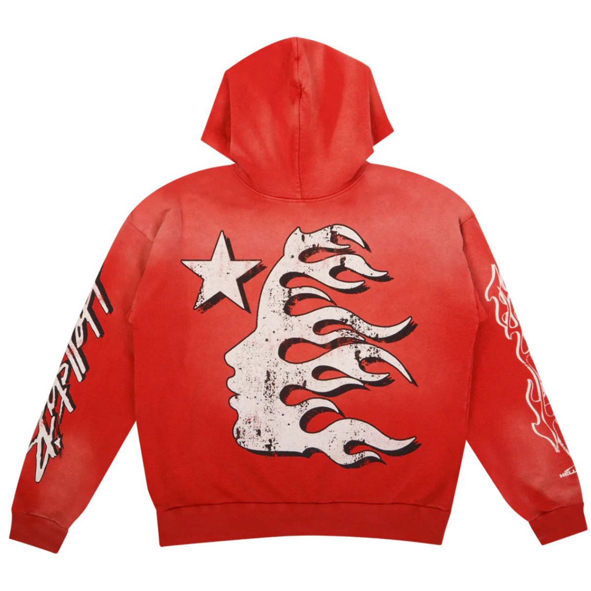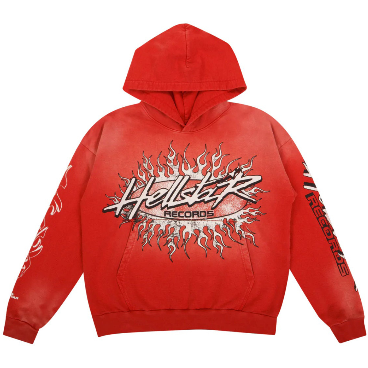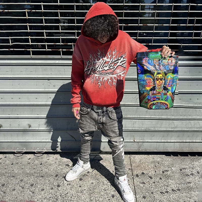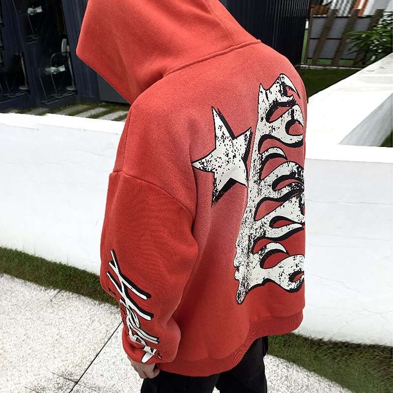 Red Vintage Pullover Hip-Hop Washed Casual Long Sleeve Fleece-lined Hoodie