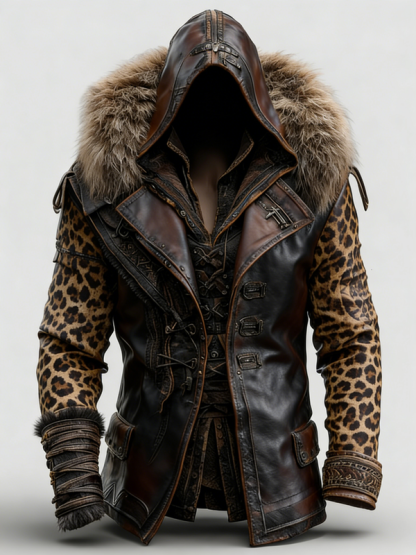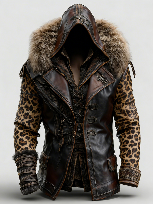 MEN'S WINTER LEOPARD PRINT WARM AND STYLISH FUR LEATHER JACKET 2690
