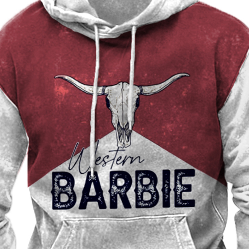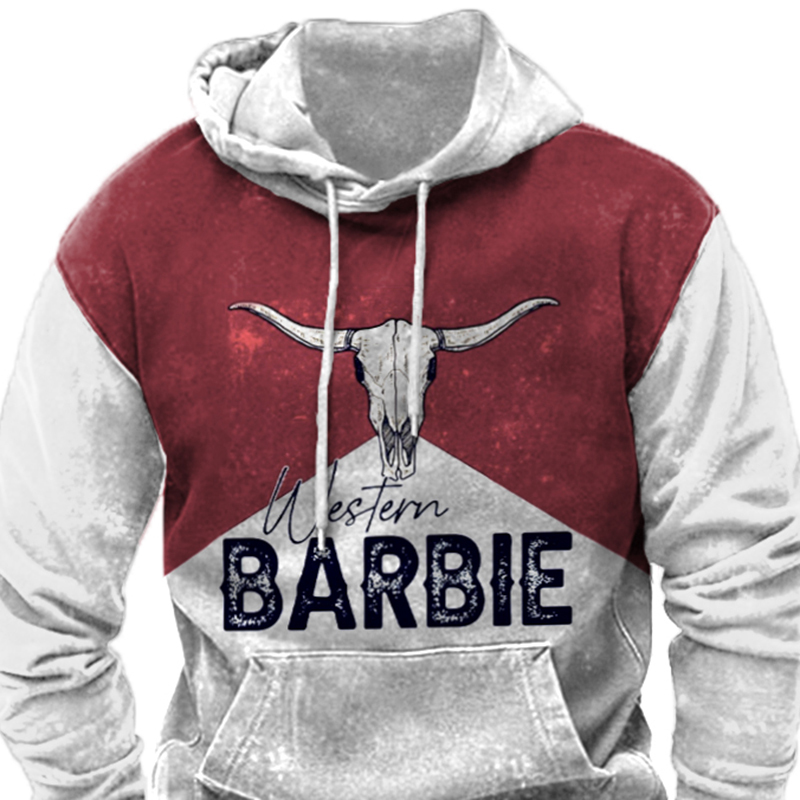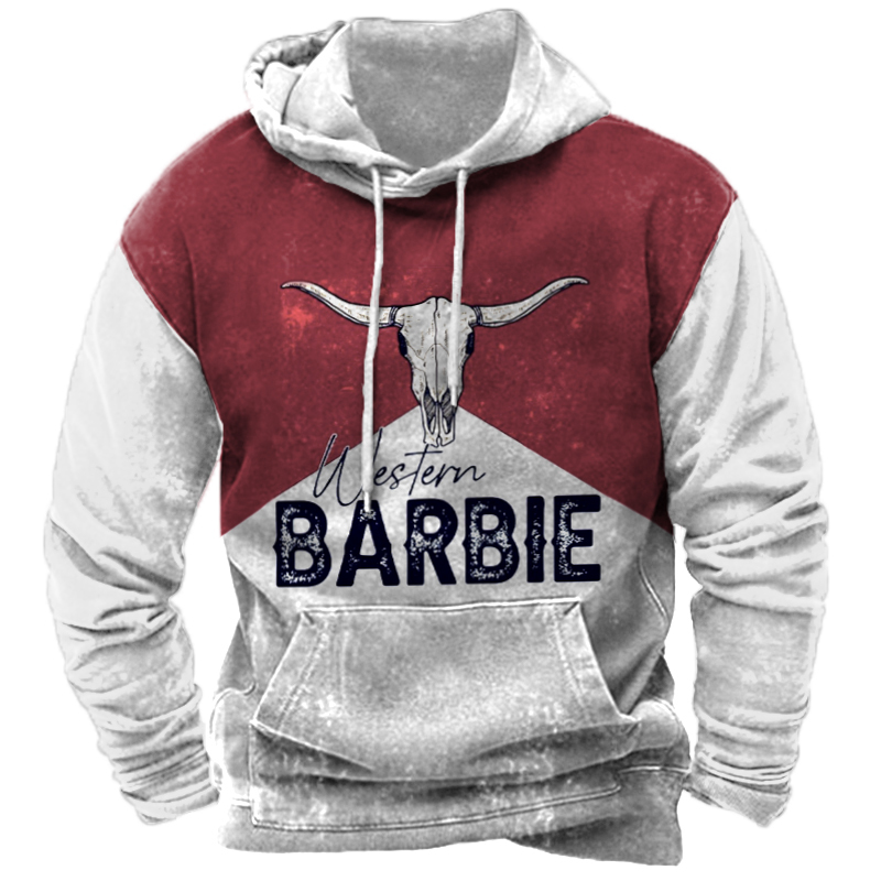 Men's Printed Color Block Hooded Casual Sweatshirt