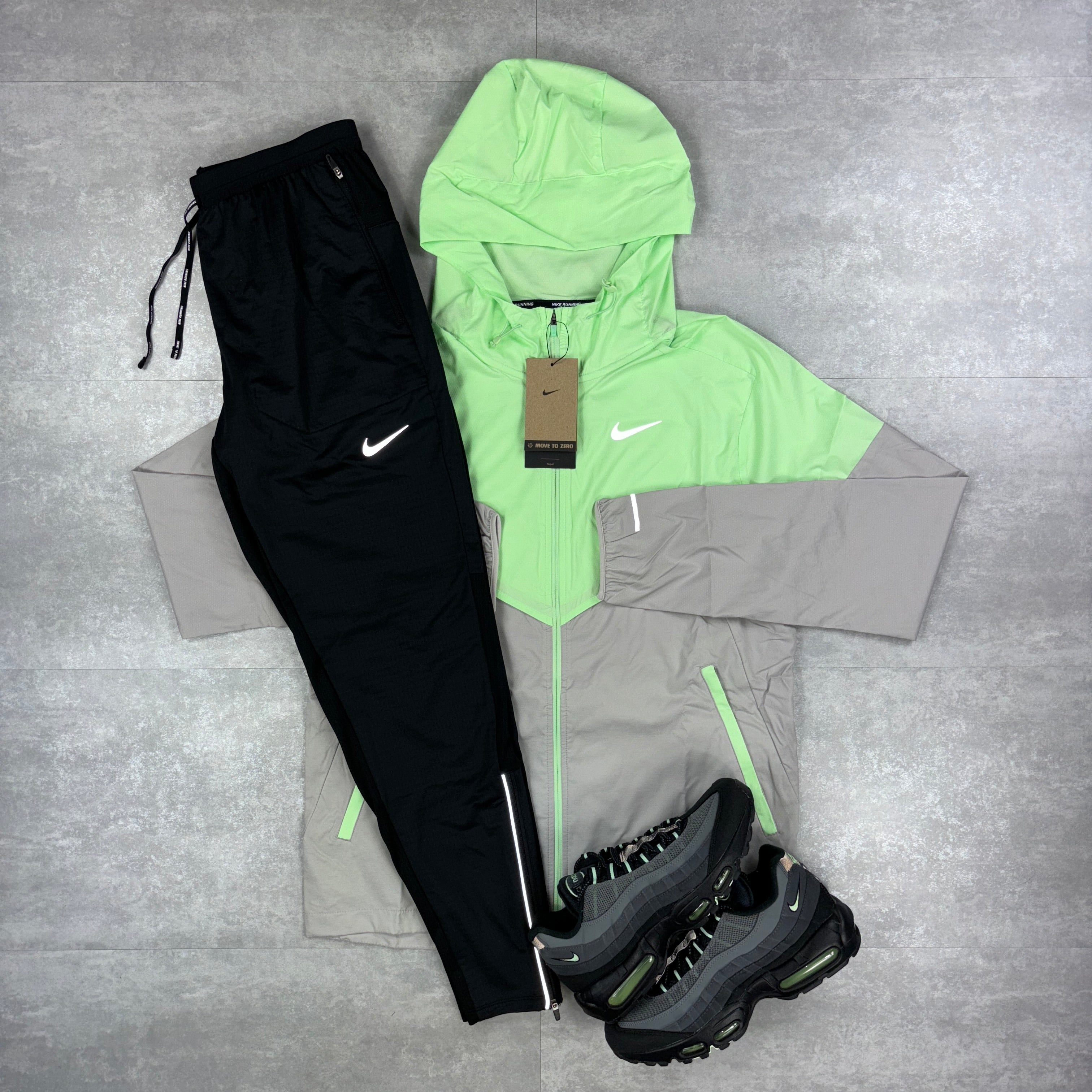 Here we have the Vapour Green Nike UV windbreaker. The iconic Windrunner jacket is ready for the next chapter. Built for rainy days, this super-lightweight running jacket repels water, so staying dry is never a problem. What about sunny days? UV-blocking fabric provides protection in the areas covered by the jacket. Plus, it's packable and designed with plenty of airflow and breathability so you can keep cool on your next run—no matter what distance you go.