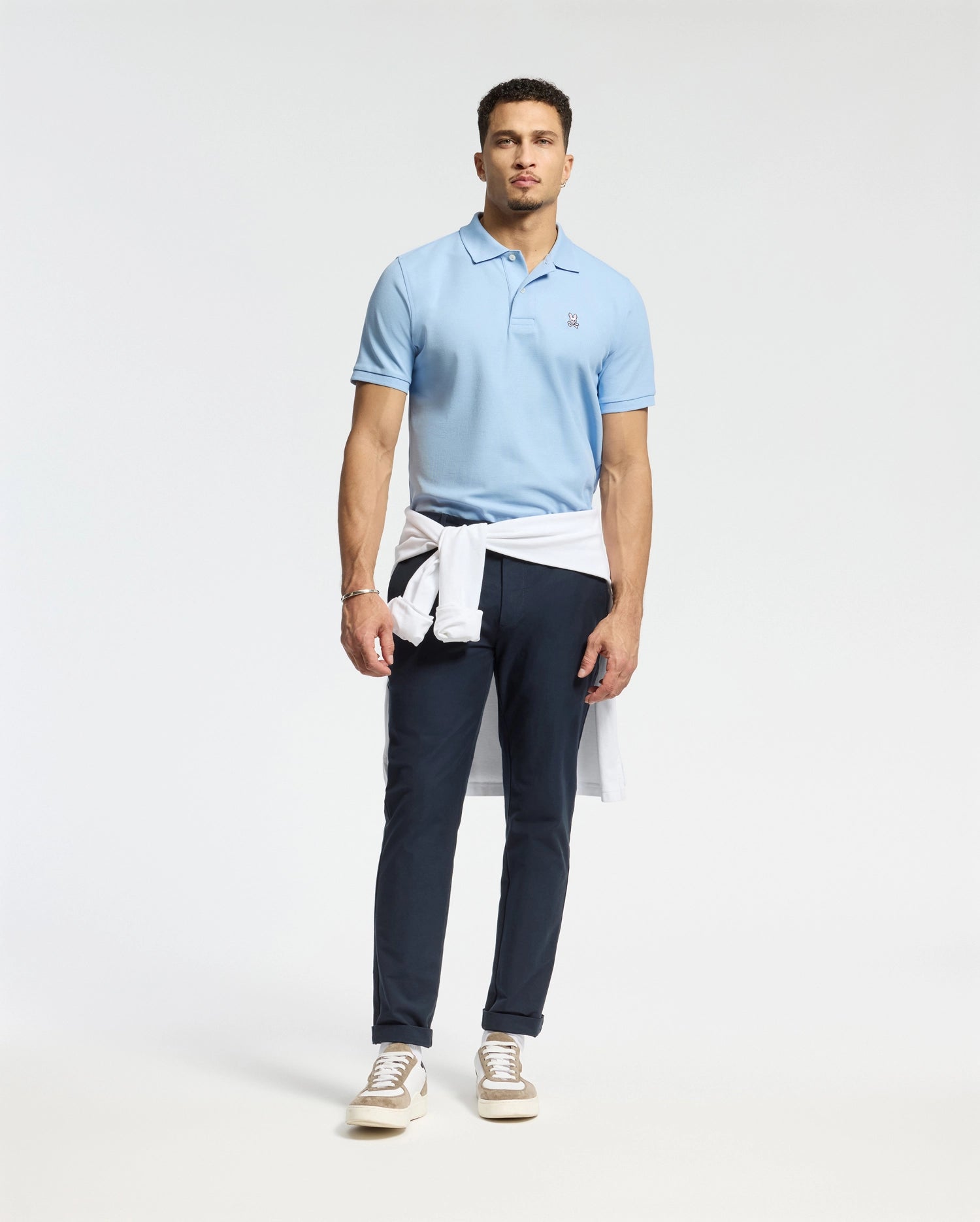 The men's Classic piqué polo is a tried-and-true wardrobe staple. Spun from breathable Pima cotton and cut for a clean profile, it's accented with mother-of-pearl buttons and an embroidered Bunny logo.