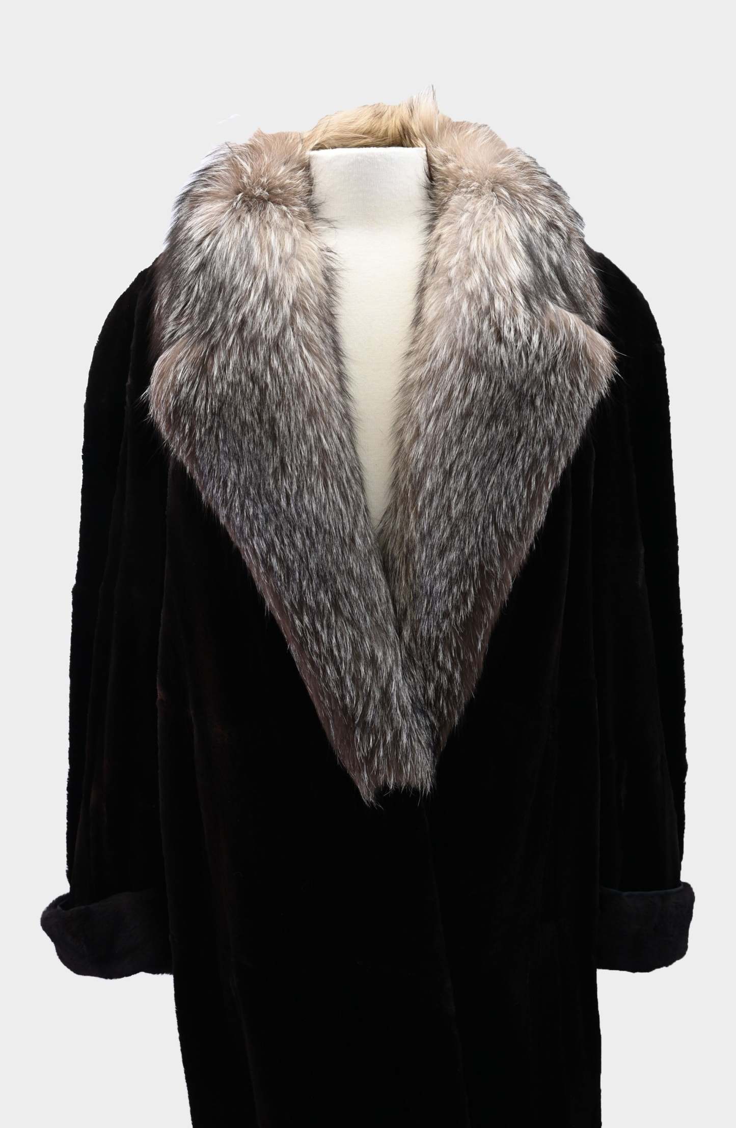 Sheared Beaver and Silver Fox Fur Coat