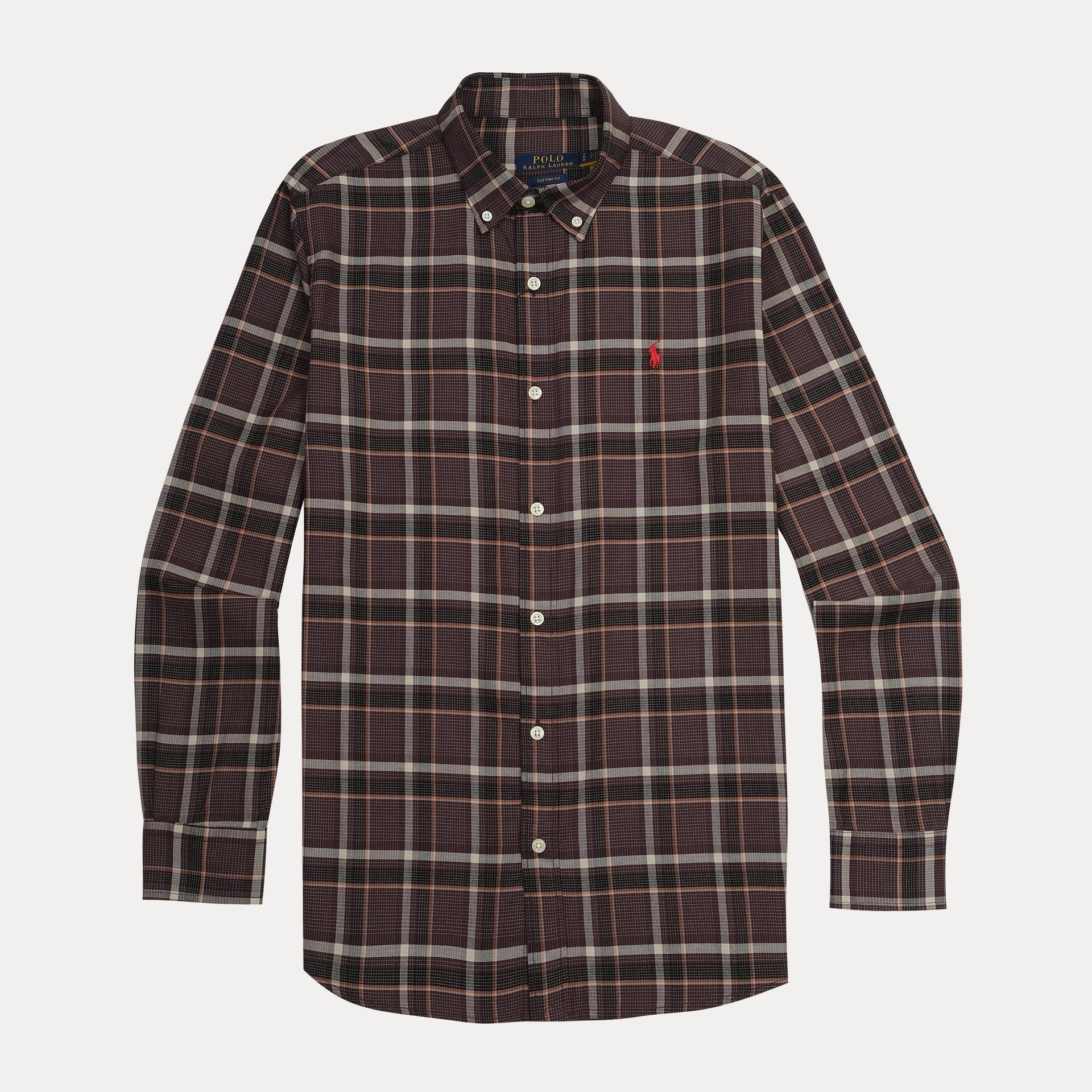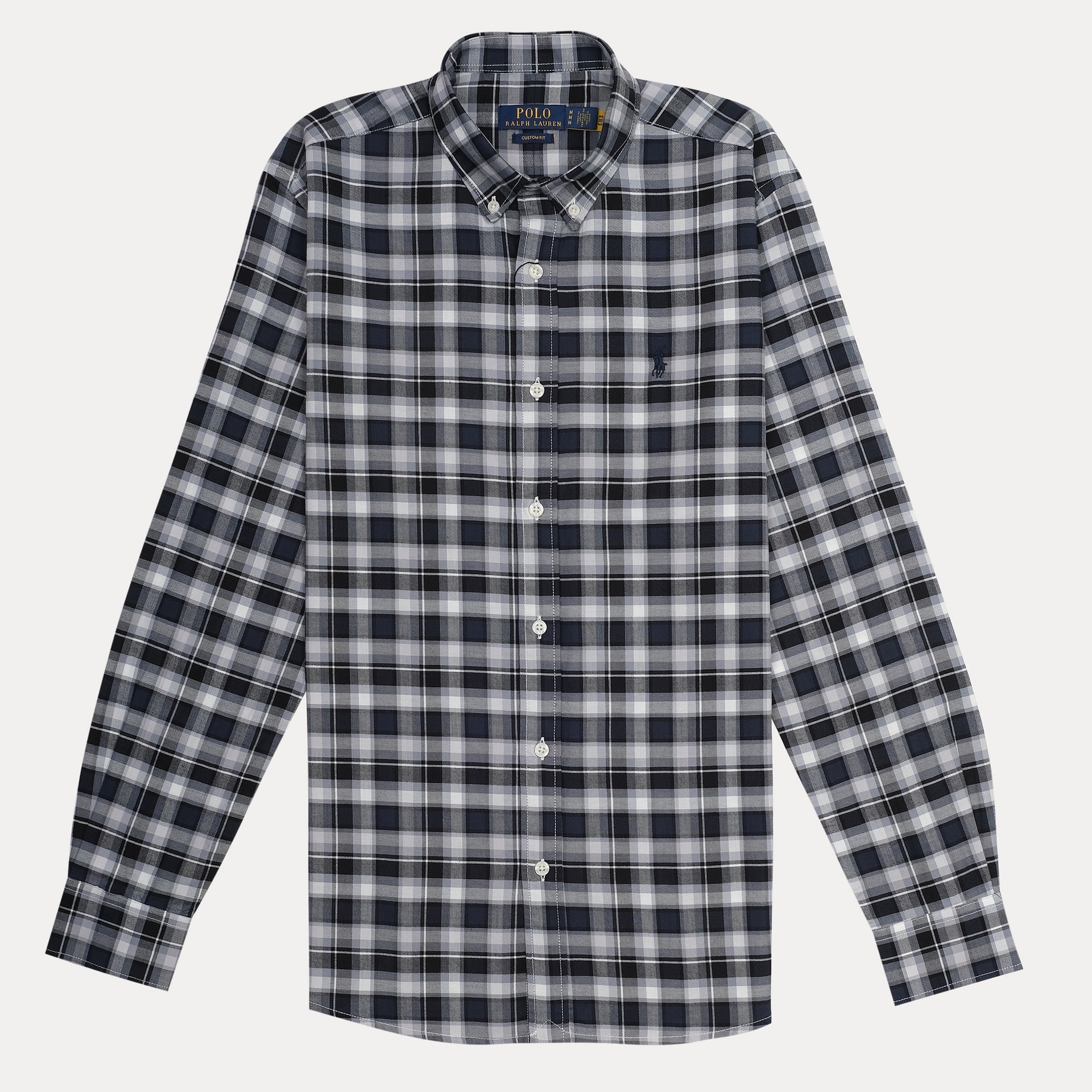 POLO Twilight Charcoal Custom Fit Long Sleeve Plaid Button-Down Shirt