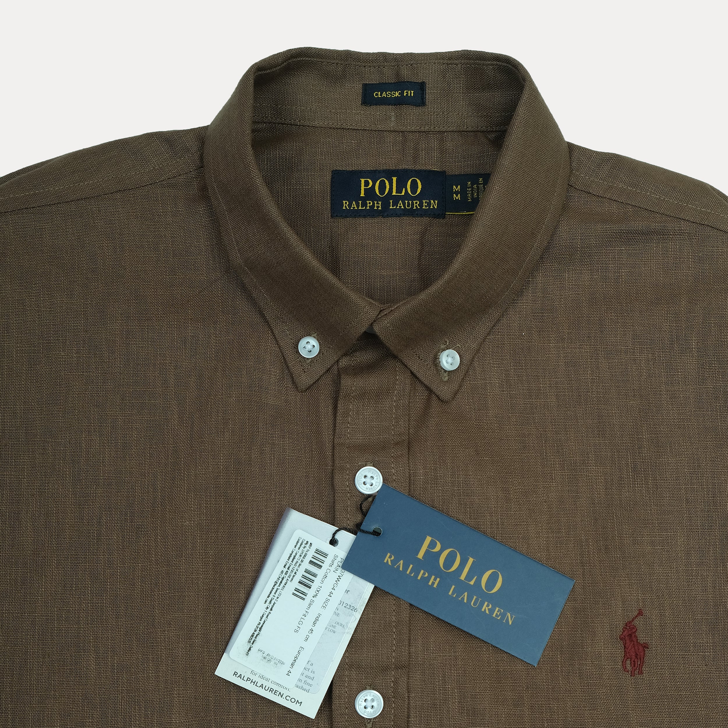 POLO Linen Classic Fit Long Sleeve Button-Up Shirt in Earthy Brown