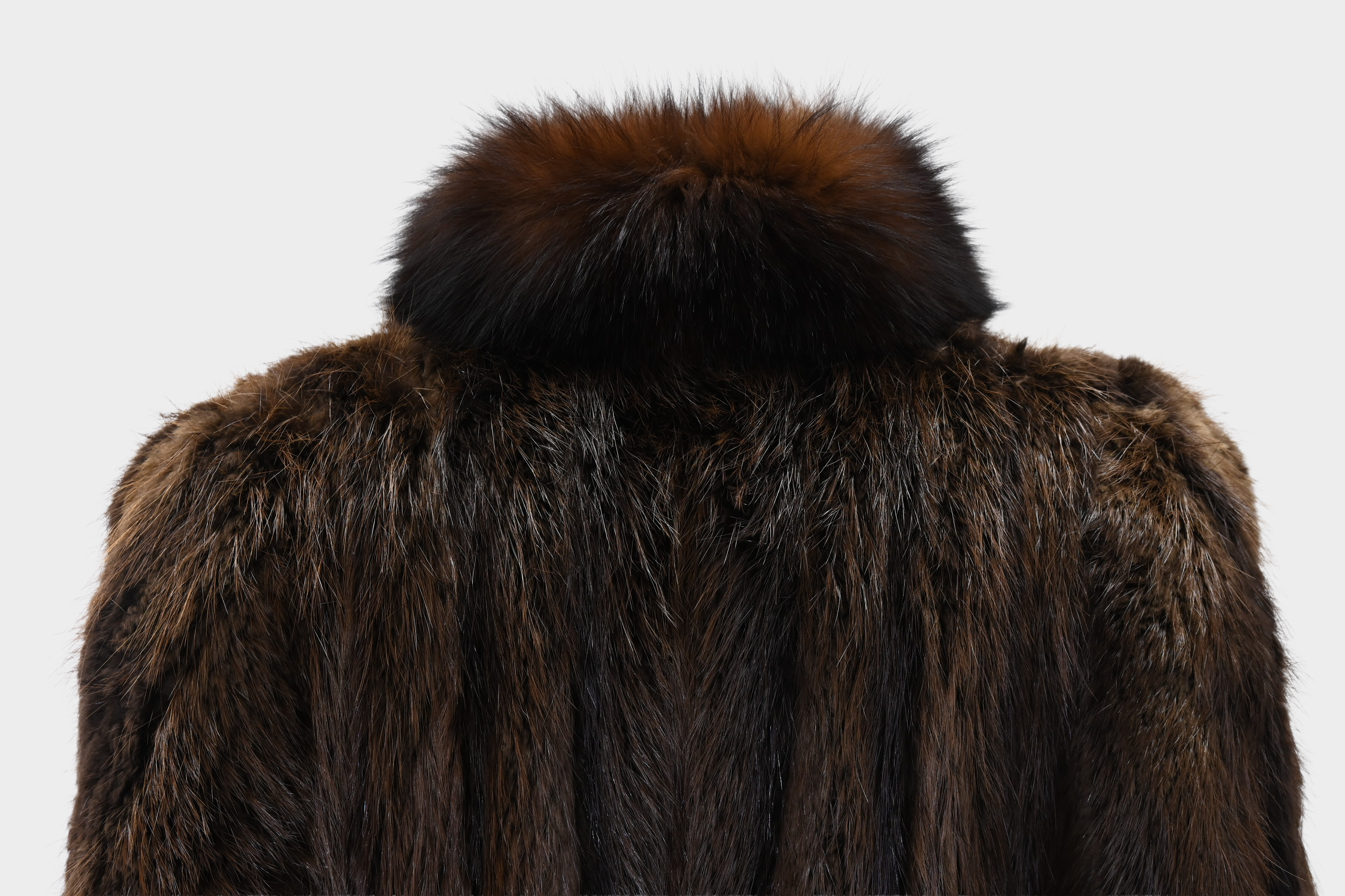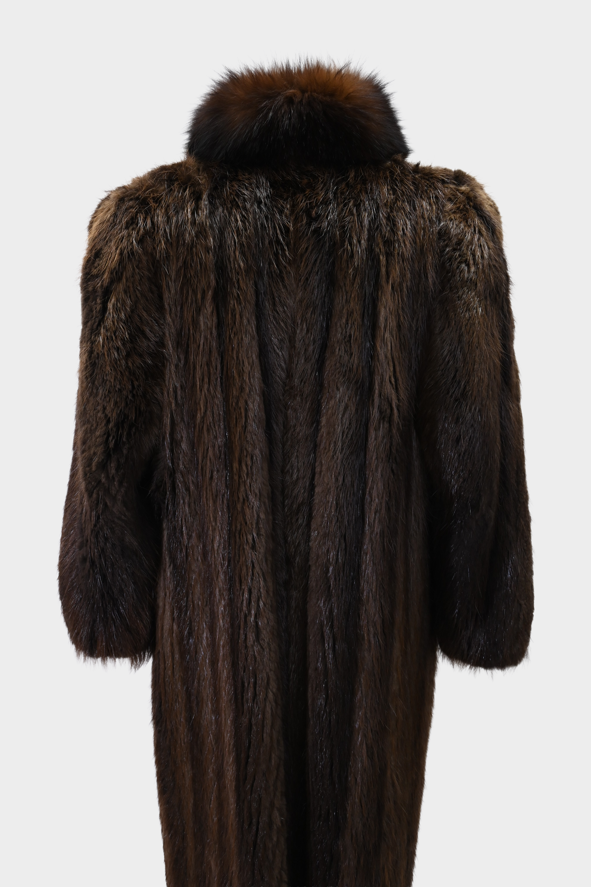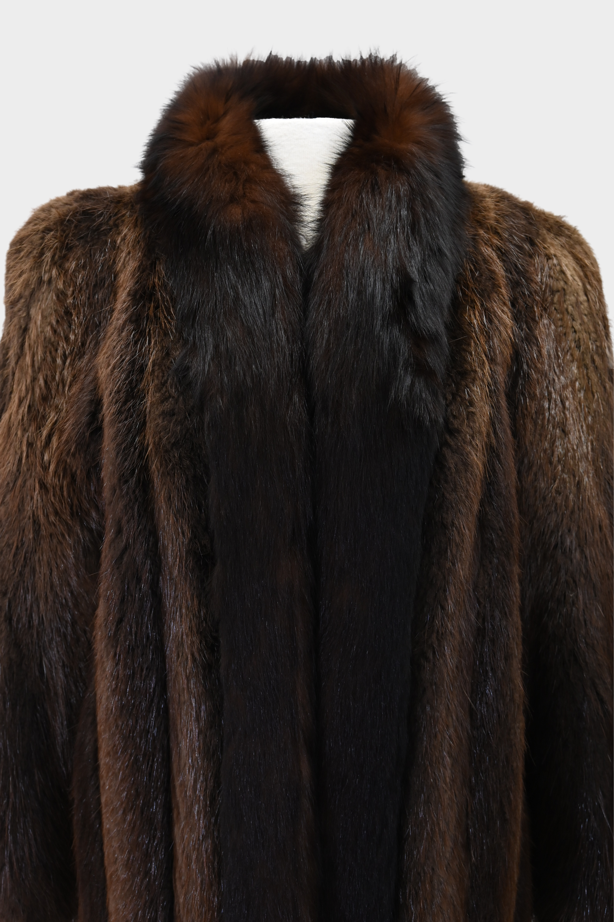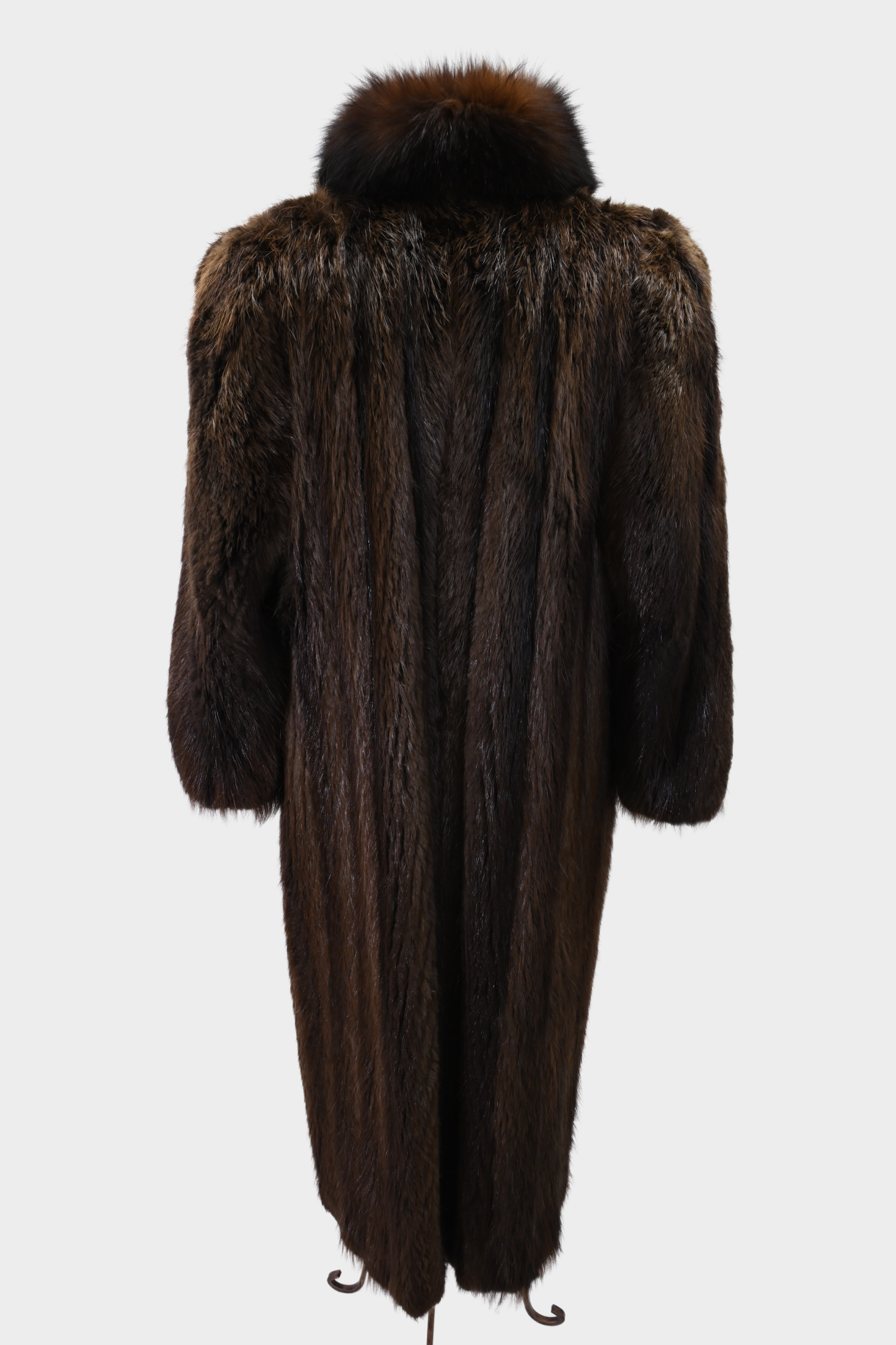 - Beaver Full Length Coat with Fox Fur Tuxedo Trim