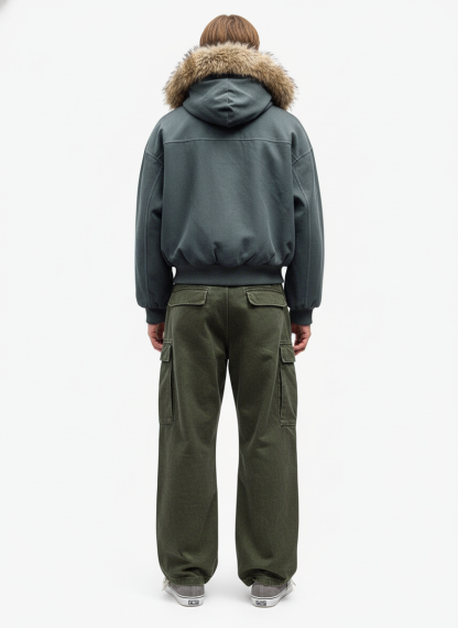 Faux Fur Lined Zip Up Winter Hooded Bomber Jacket - 2560