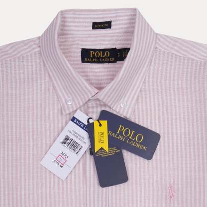 Polo Ralph Lauren Classic Fit Striped Linen Shirt in Blush Whisper