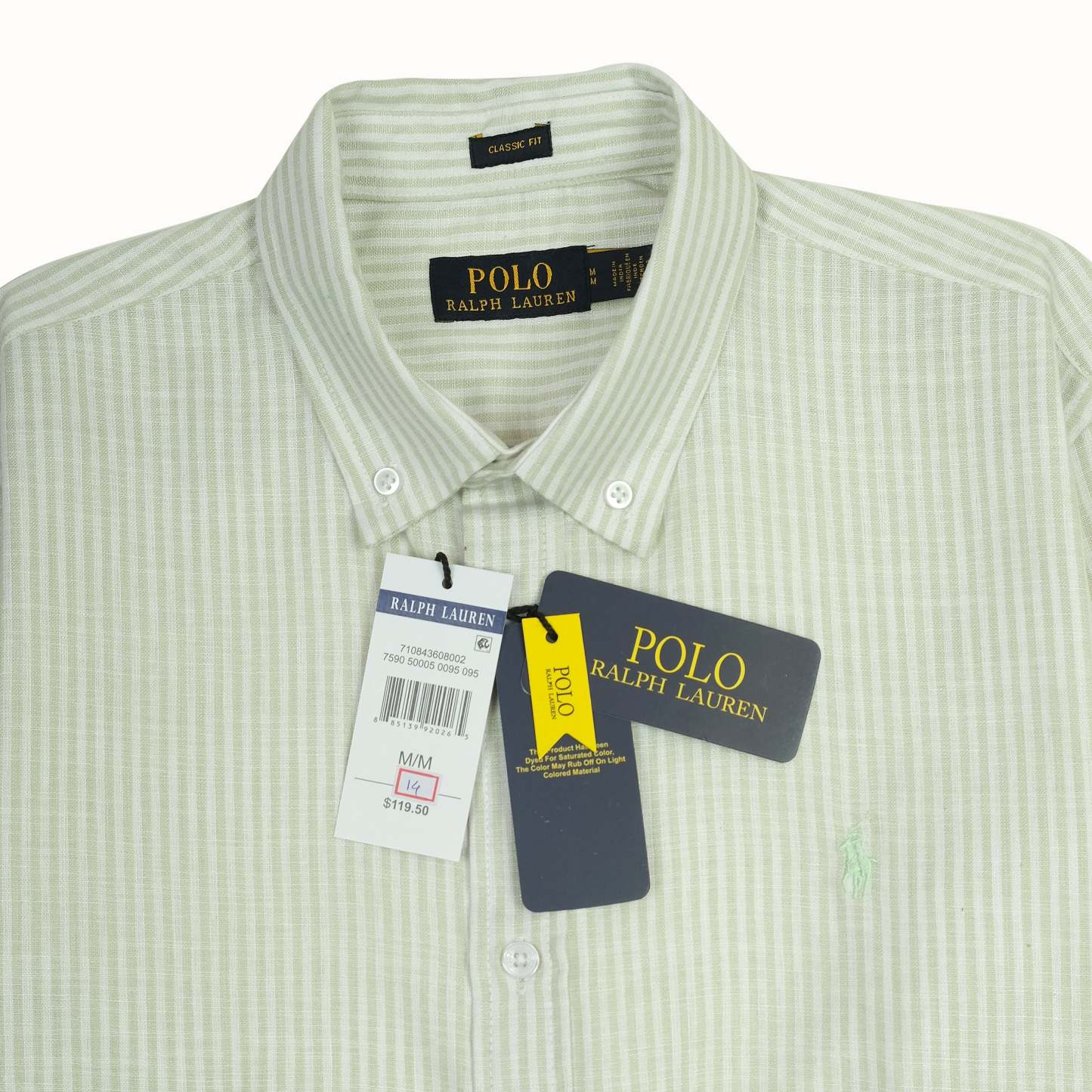 Polo Ralph Lauren Classic Fit Whispering Green Striped Linen Shirt