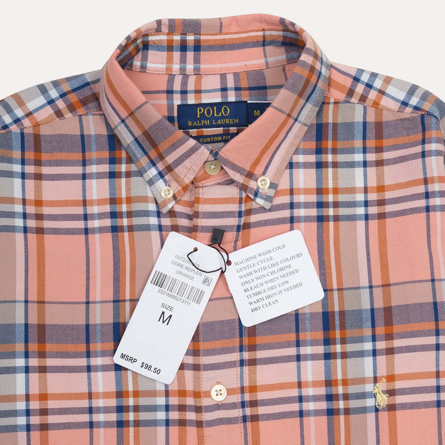 Polo Ralph Lauren Custom Fit Plaid Shirt in Sunset Coral