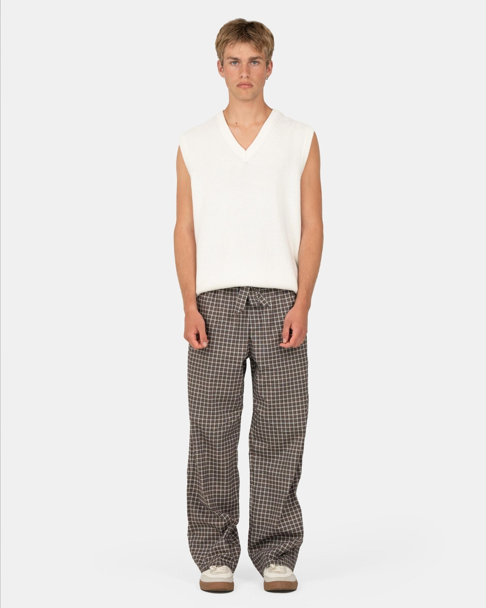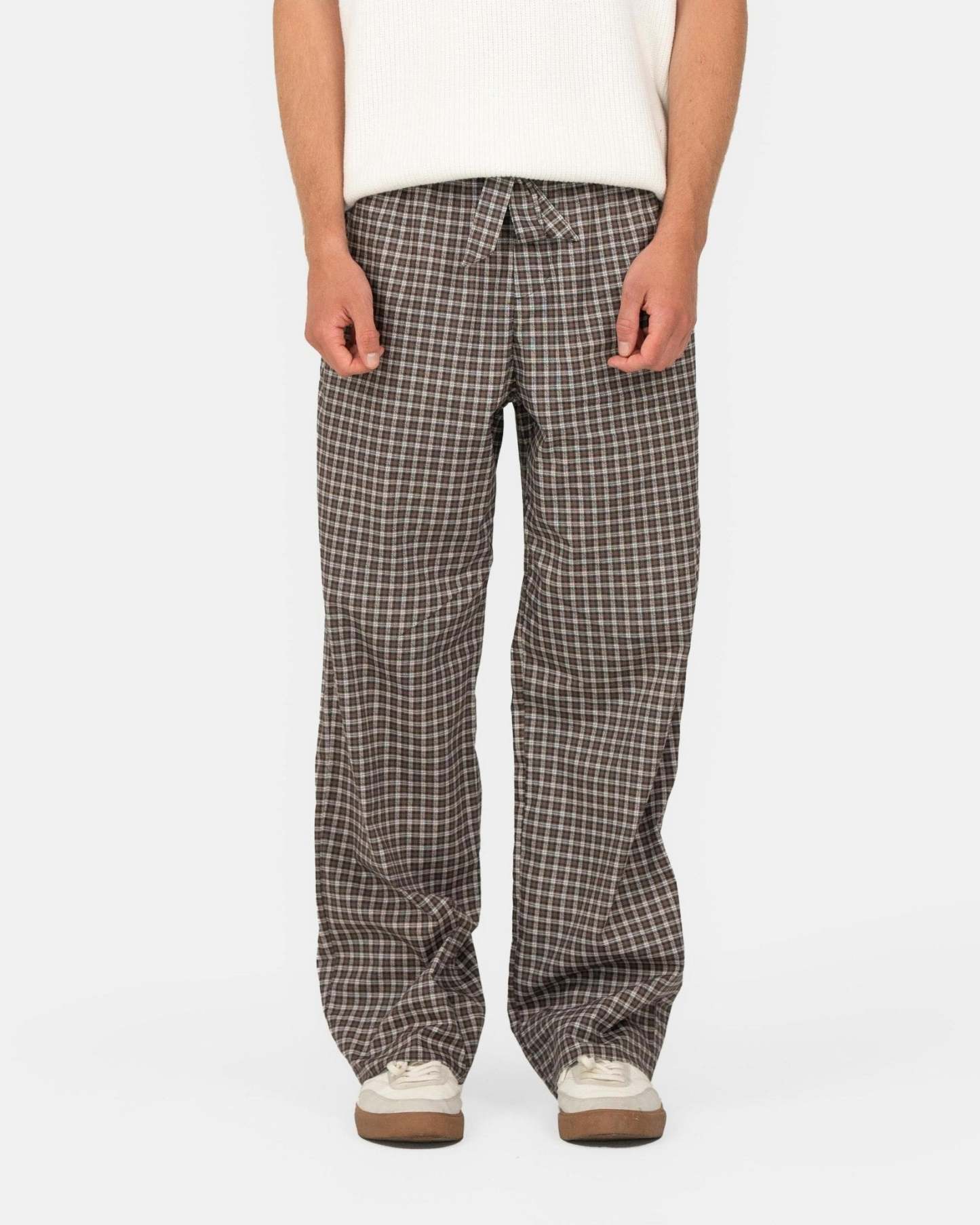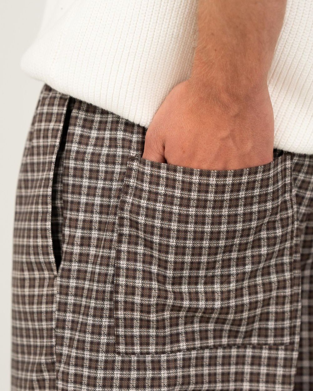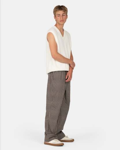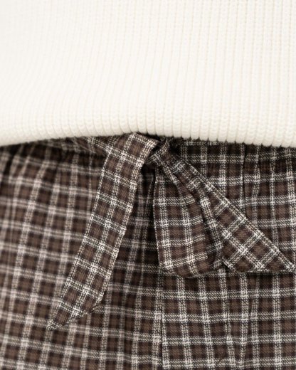 Disse løst siddende ternet pyjamas bukser tilbyder komfort og stil til enhver lejlighed. Med et bindebånd foran og en elastisk kant kombinerer bukserne lethed med en moderne stil. De er luftige og lette og har praktiske lommer på siden samt to baglommer.