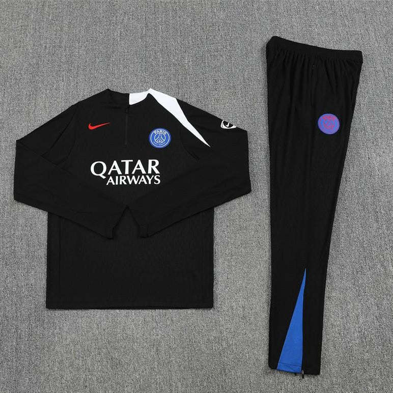 The 2025/2026 Paris Saint-Germain Black Tracksuit delivers a bold, modern look inspired by elite football style. Designed with premium, breathable fabric, it offers superior comfort for both training and everyday wear. The sleek all-black design with subtle detailing creates a powerful and sophisticated appearance. With a tailored fit and durable construction, this tracksuit is built for performance and street-ready style.