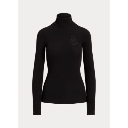 This slim rib-knit roll neck is crafted with a stretch-infused fabric and features a beaded script "RL" crest on the chest.