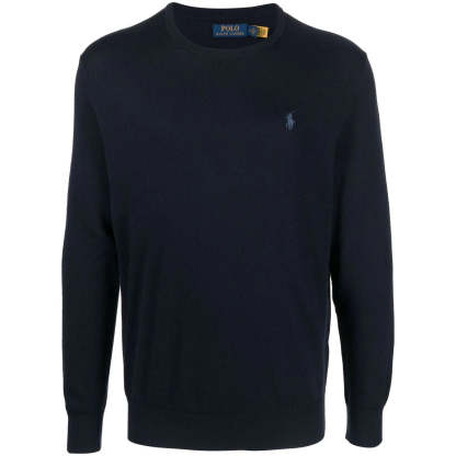 Dark blue, cotton and cashmere blend, knitted material, iconic Polo Pony logo, embroidered logo on the chest, long sleeves and round neck.