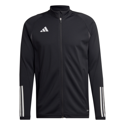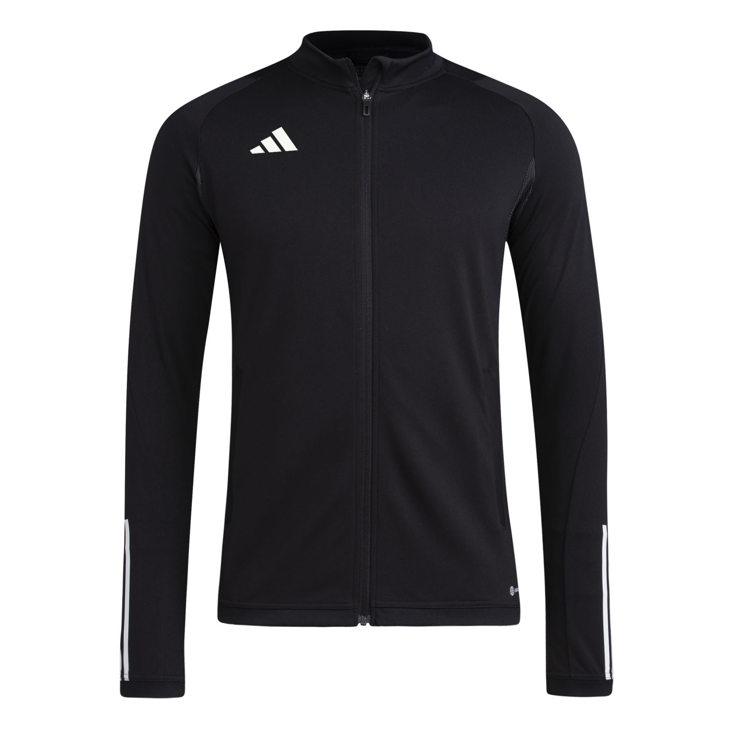 Show up ready for training in this adidas football full-zip jacket. It has a slim fit that hugs the body and is made of a high-stretch fabric for freedom of movement. Two-tone mesh inserts on the sides enhance breathability, so you stay comfortable while you improve your skills. Moisture-absorbing AEROREADY keeps you dry from kickoff until the last whistle.Made with 100% recycled materials, this product represents just one of our solutions to help end plastic waste.