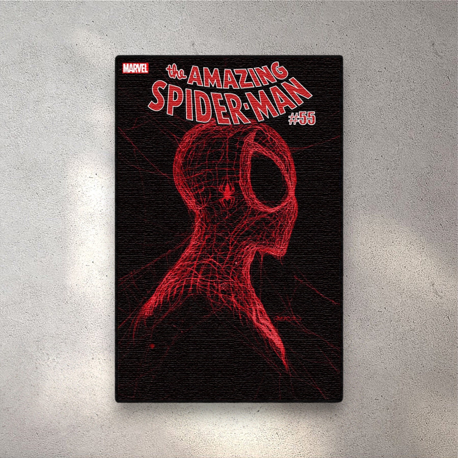 This rug features the striking cover of The Amazing Spider-Man #55 (2021), also known as the “Webhead” cover, created by artist Patrick Gleason. With its minimalist red webbed design on a black background, this cover became an instant classic for its unique and modern take on Spider-Man’s iconic look. A must-have for any contemporary Spider-Man fan or collector.