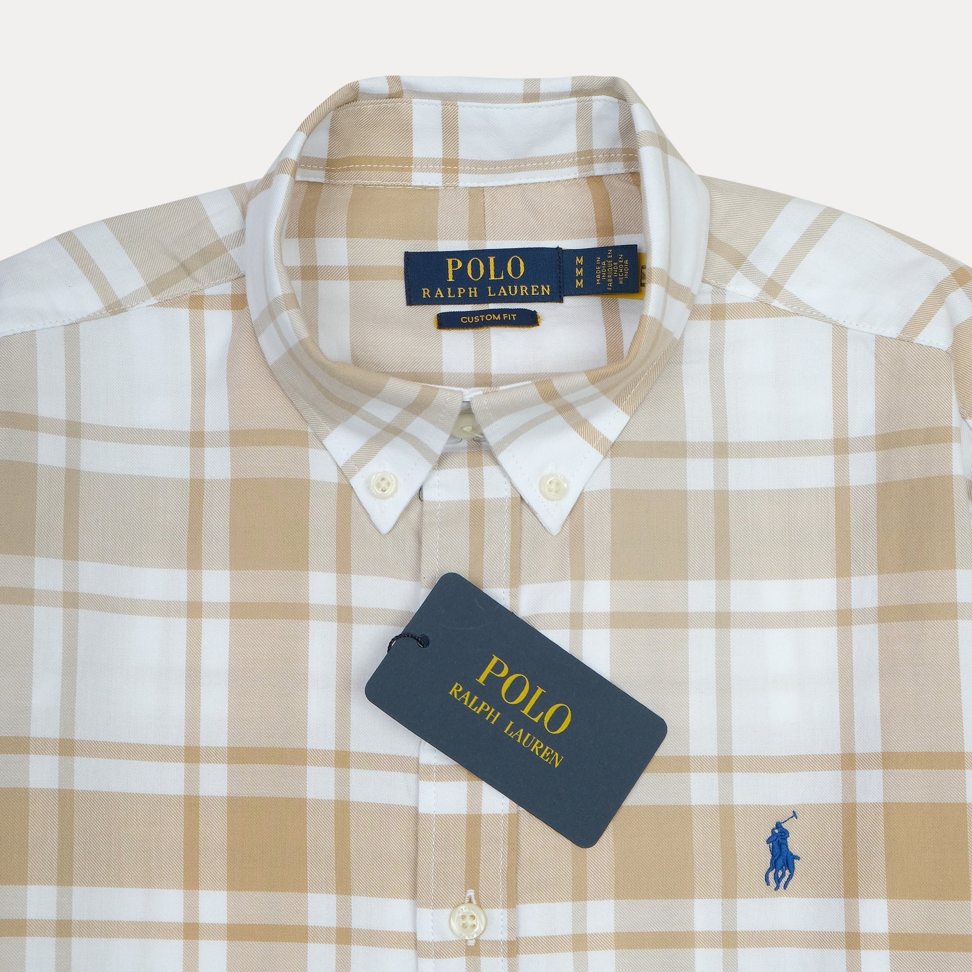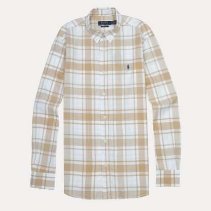POLO Sandstone Cream Tailored Fit Long Sleeve Plaid Shirt