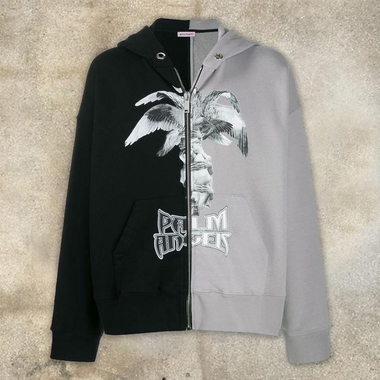 Fashion hip-hop stitching color contrast long-sleeved hoodie