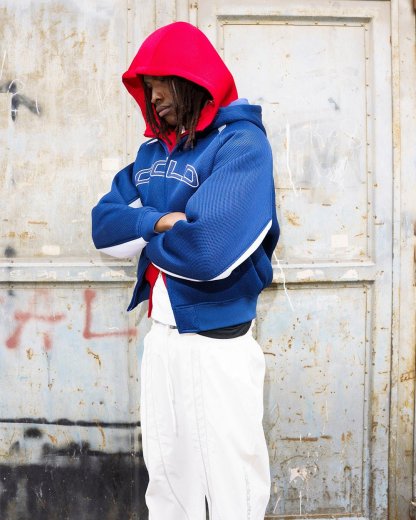 Oversized boxy fit hooded jacket.