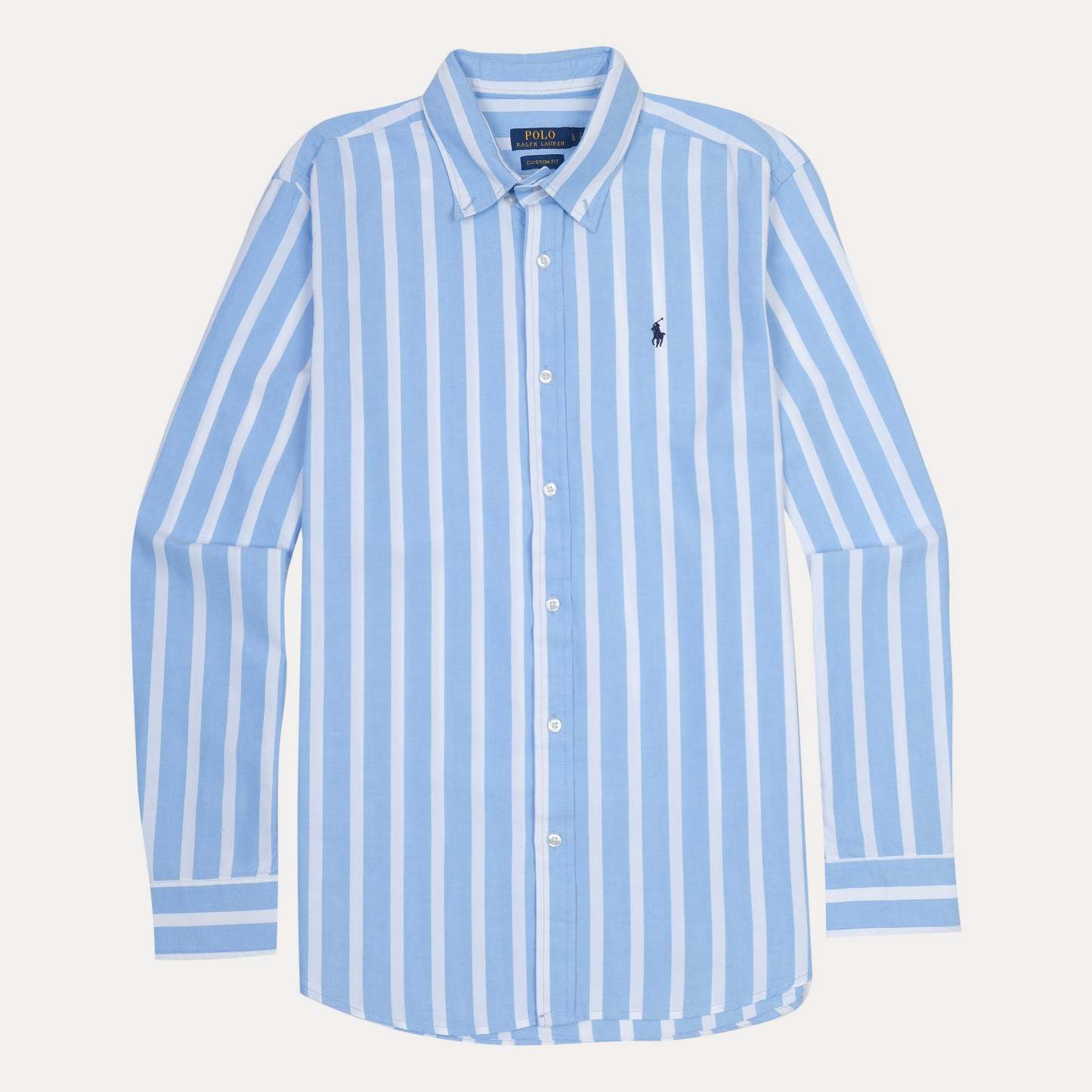 Polo Ralph Lauren Custom Fit Striped Elegance Shirt in Sky Blue