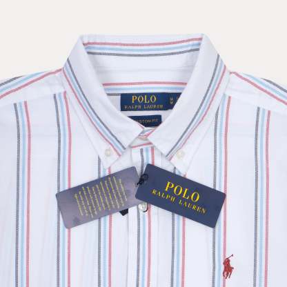 Polo Ralph Lauren Striped Elegance Button-Up Shirt in Crisp Cloud White