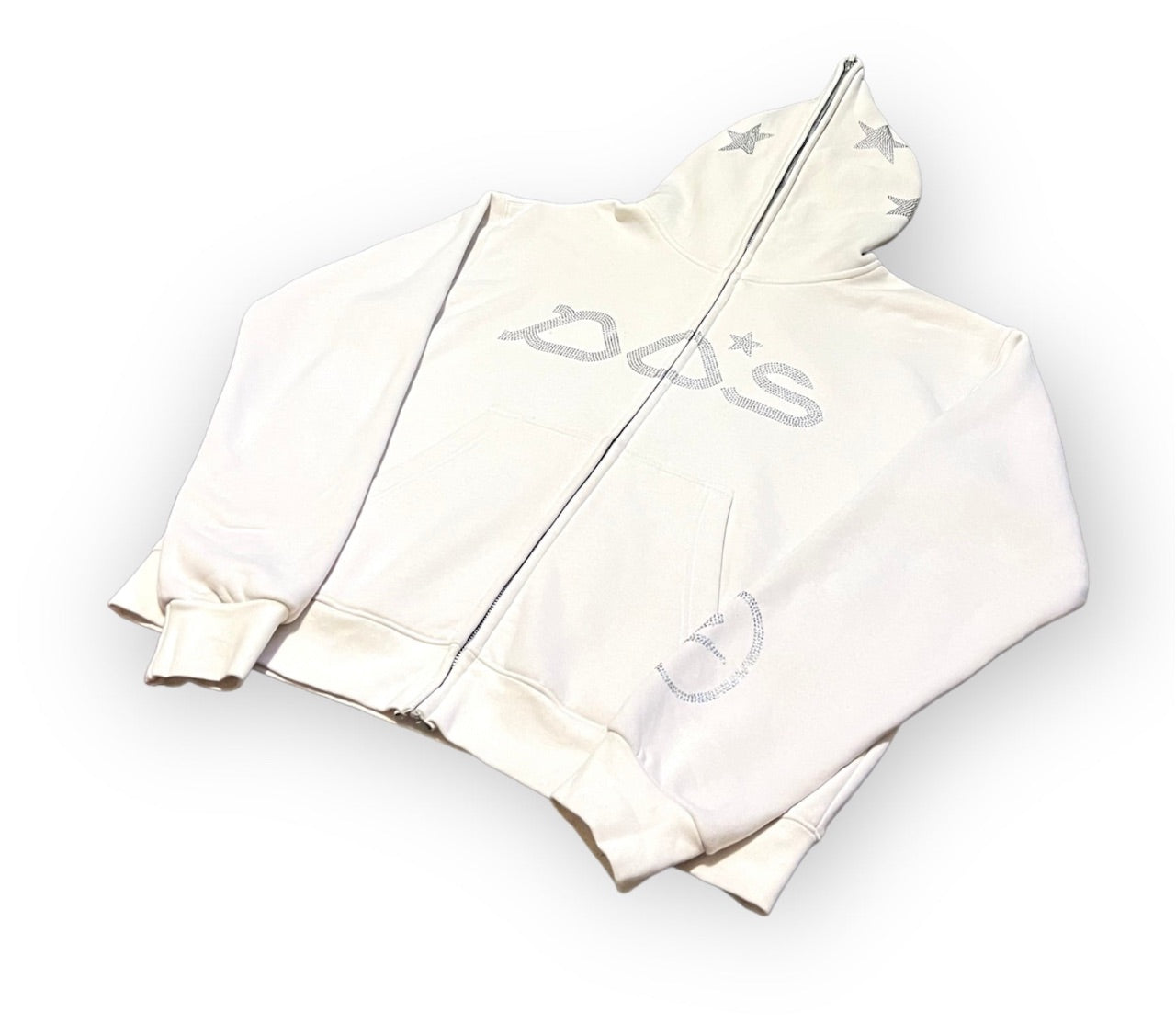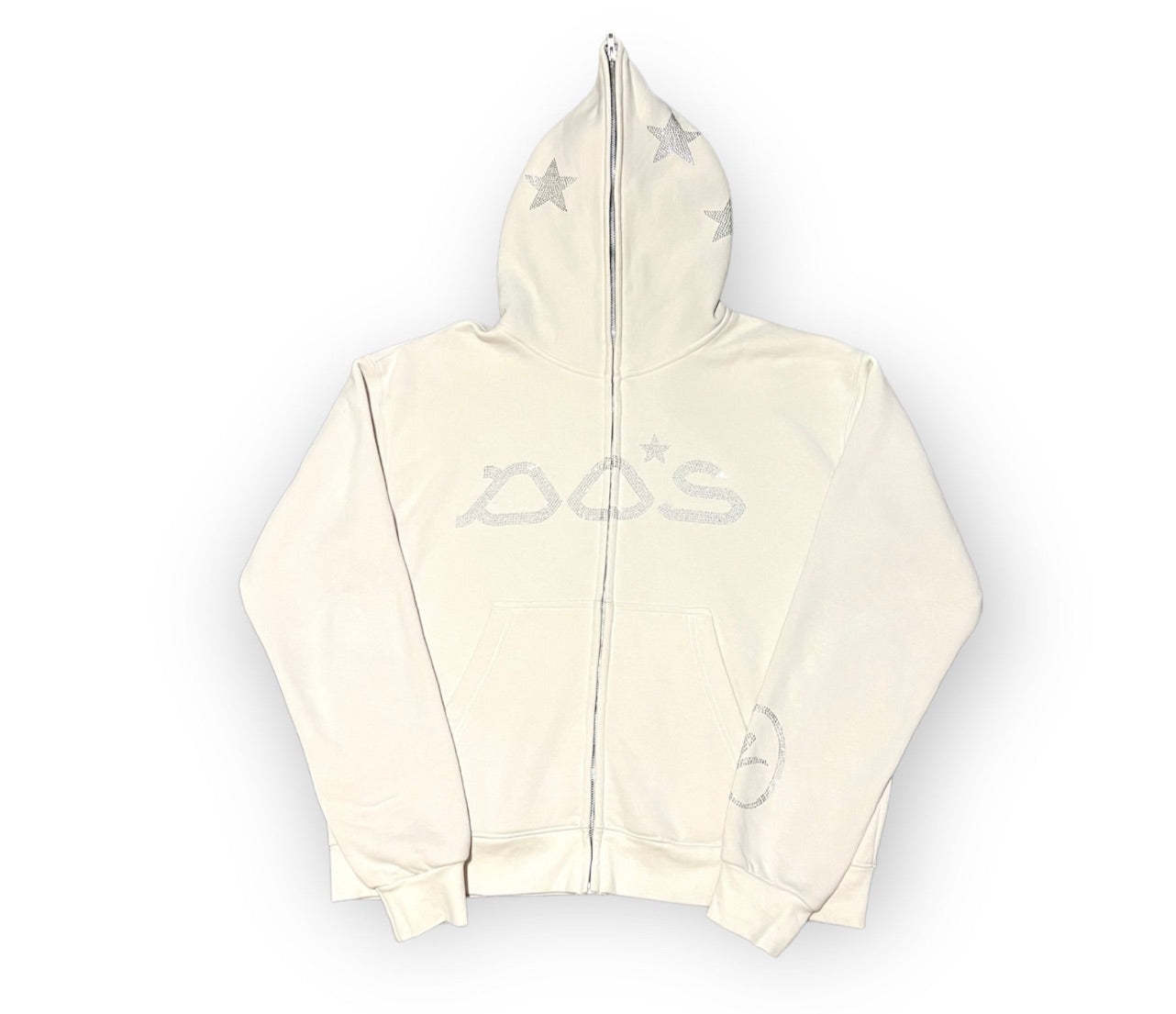 Rhinestone Full Zip Up Jacket - Beige