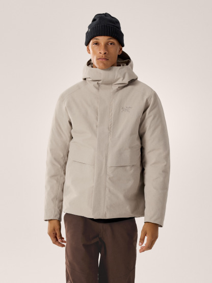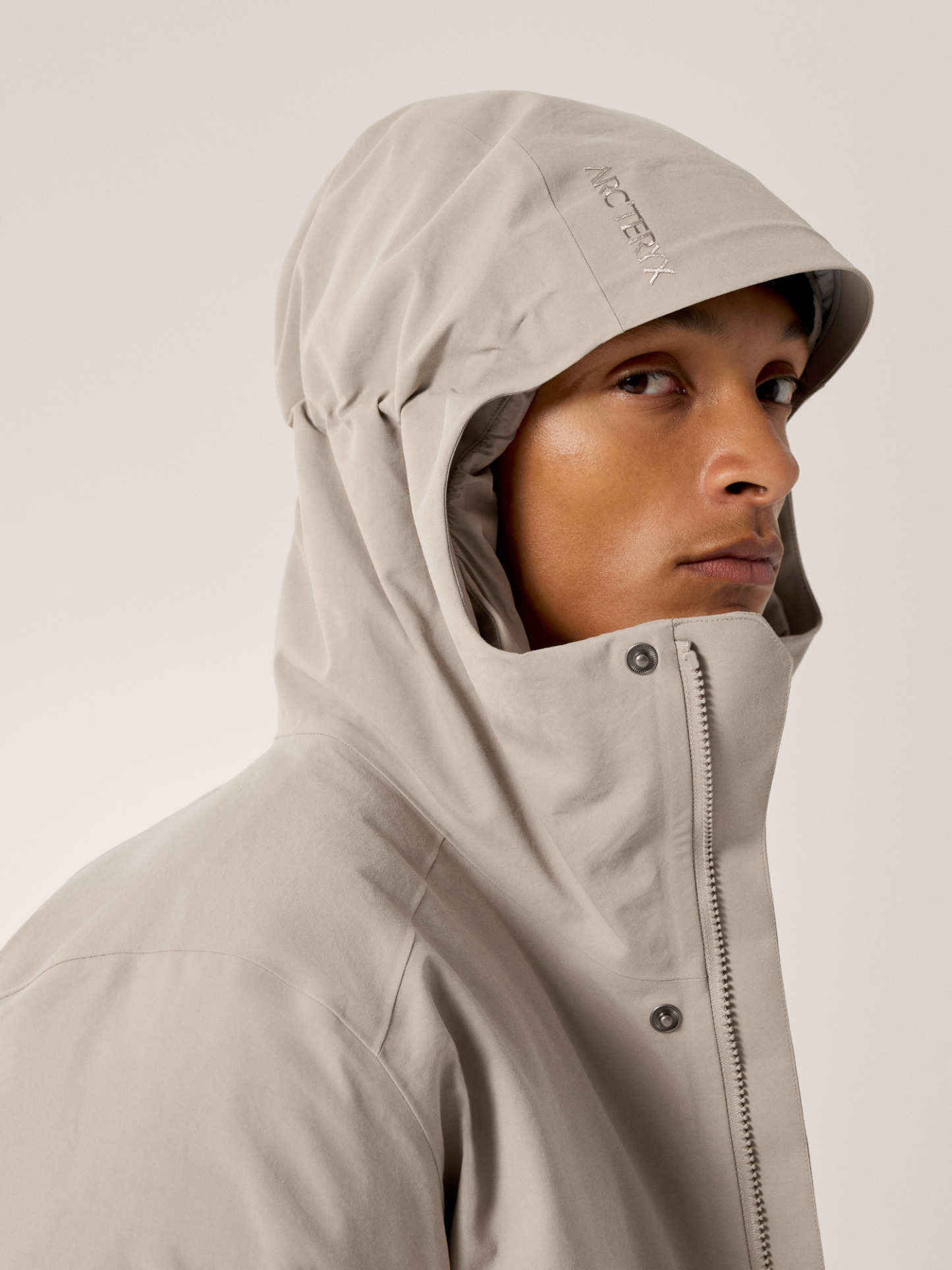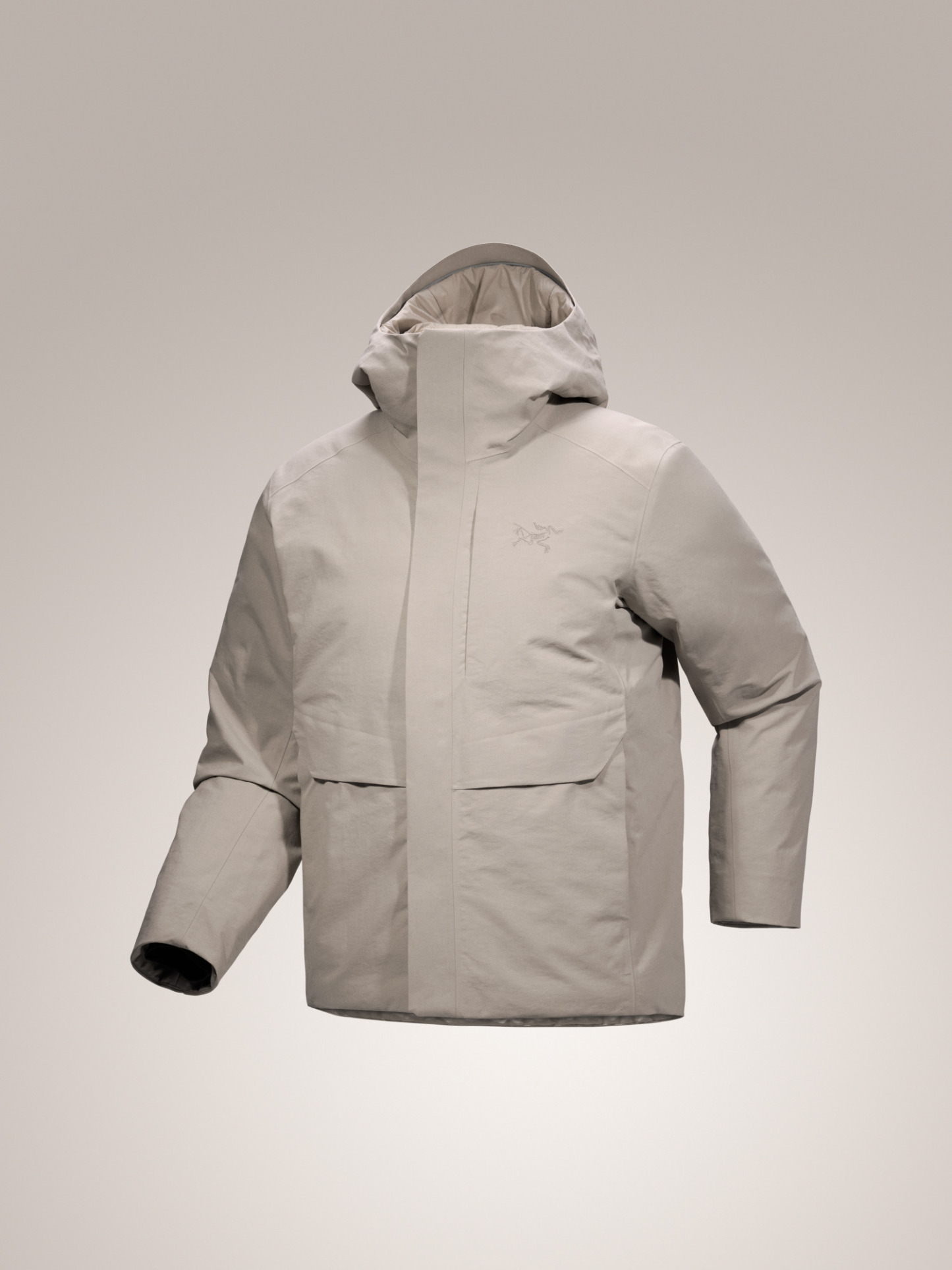 Minimalist design lines. Maximum weather protection. The Therme Down Jacket fuses a refined aesthetic with the technical construction of a tried-and-true Arc'teryx hardshell. Built for wet-weather rambles and trips around town, its GORE-TEX ePE material and adjustable StormHood™ shield from wind chill and downpours. Soft, lightweight goose down seals your body in warmth, keeping you comfortable from office to après.