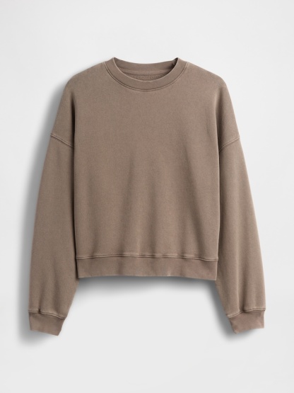 - Slightly cropped, soft cotton-blend pullover sweatshirt.