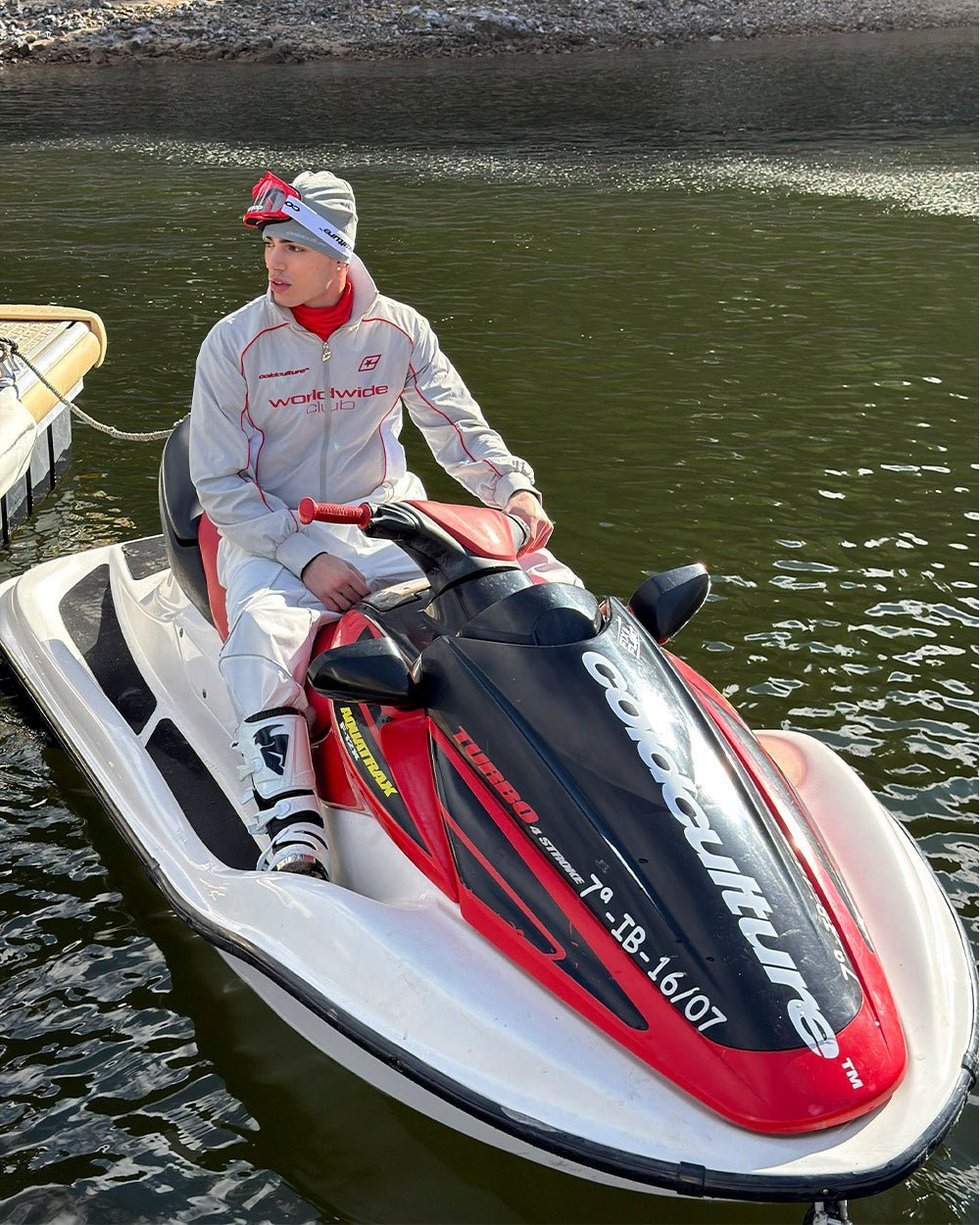 Embroidered logo and printed graphics on the front.