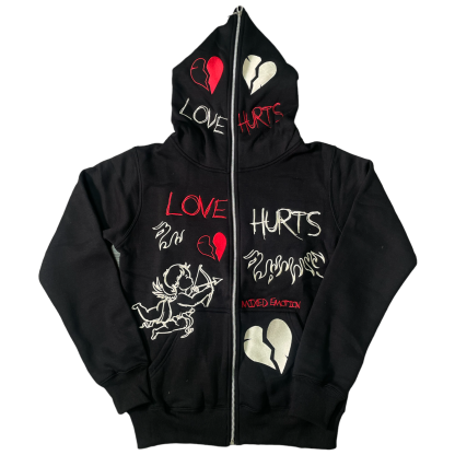 Start the winter right with our unisex "Love Hurts" zip up hoodie ;true to size for comfortable feel.