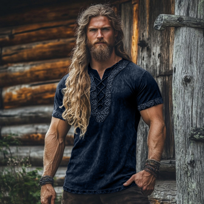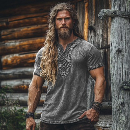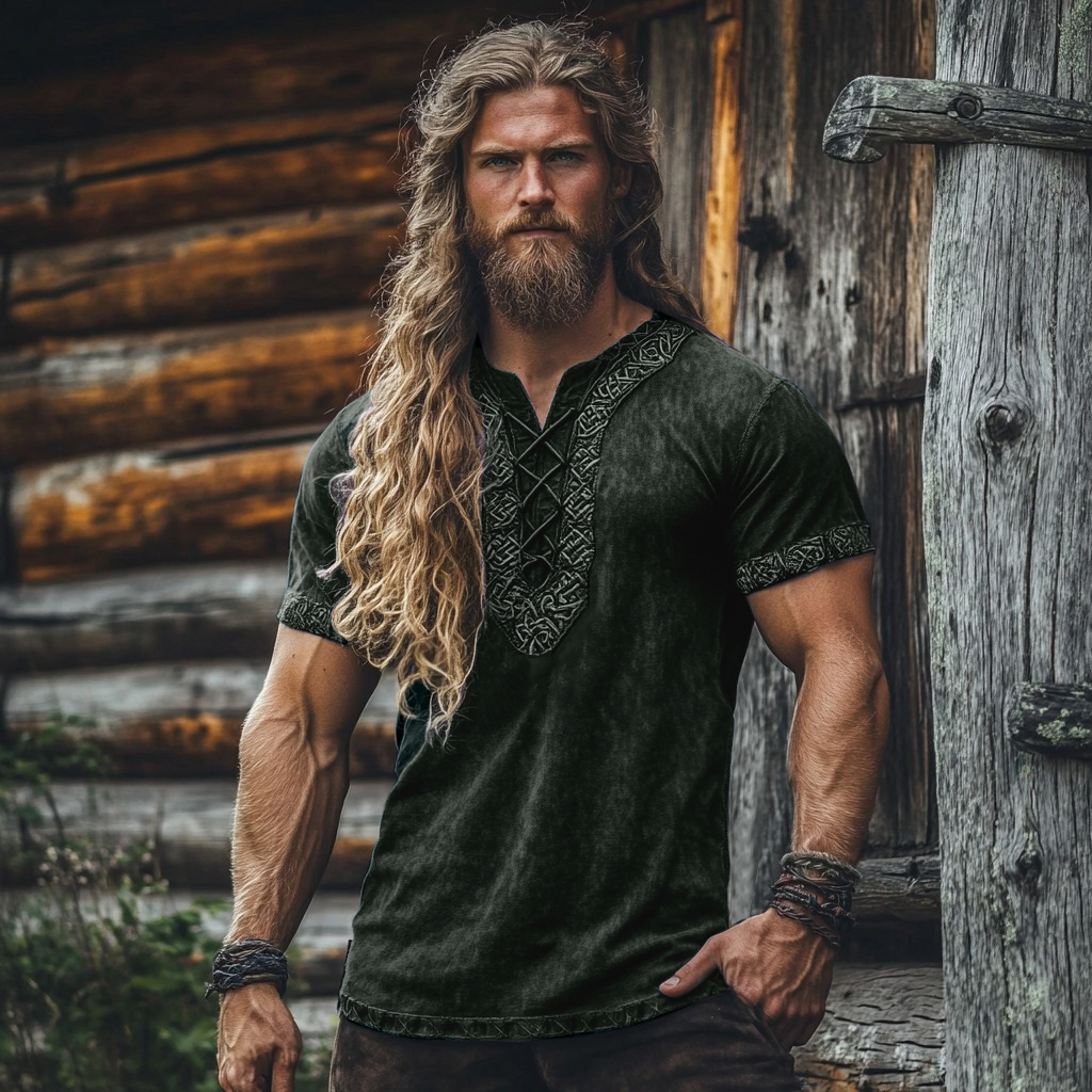 Men's Viking Tribal Celtic Embroidered Art Linen Shirt