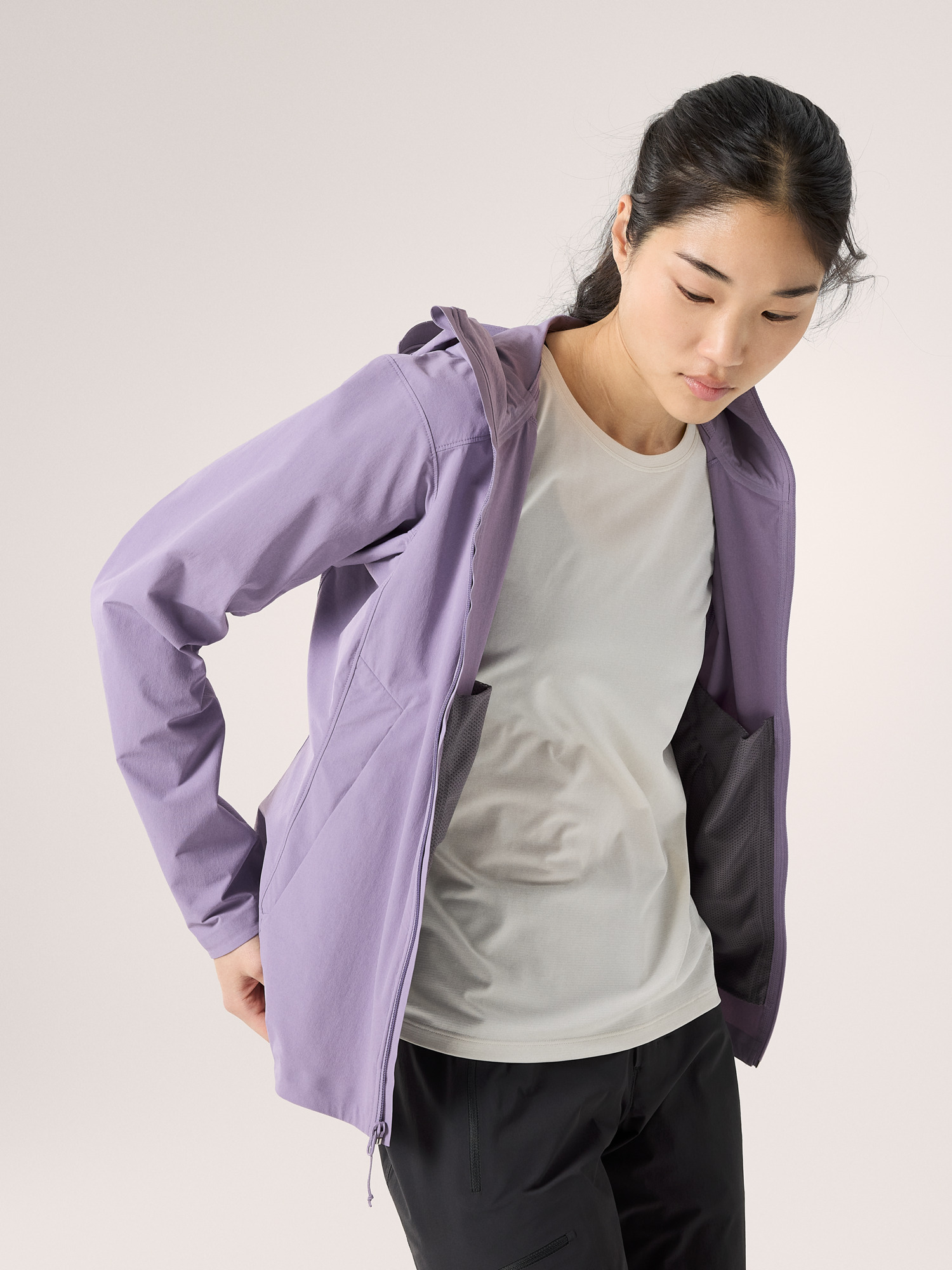 Made to handle a range of terrain, environments, and conditions, the Gamma Lightweight Hoody – our lightest weight Gamma – is an essential softshell for anyone seeking new adventures and experiences. The lightweight, water-repellent Fortius™ 1.0 softshell fabric stretches, breathes, provides UPF 40+ protection, and is made with recycled content. A low-profile hood covers the head, zippered hand pockets secure essentials, and the trim fit allows room for light layers and is patterned for freedom of movement.