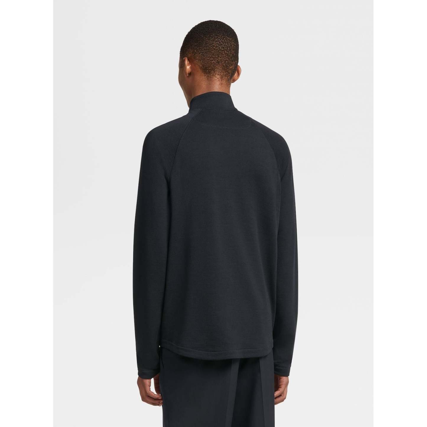 Thanks to Zegna's technologically advanced, superfine Merino wool, the navy blue Techmerino™ full zip sweatshirt ultra soft and breathable. This comfortable sweatshirt is equipped with a convenient zipper for more styling options, while the high neck creates a sleek, streamlined silhouette. PRODUCT CODE E8475-868-B09. FIT AND PRODUCT DETAILS: • High neck • Zip closure • Open bottom • Quick dry • Comfort fit • Thermoregulation • Highly breathable • Regular fit.