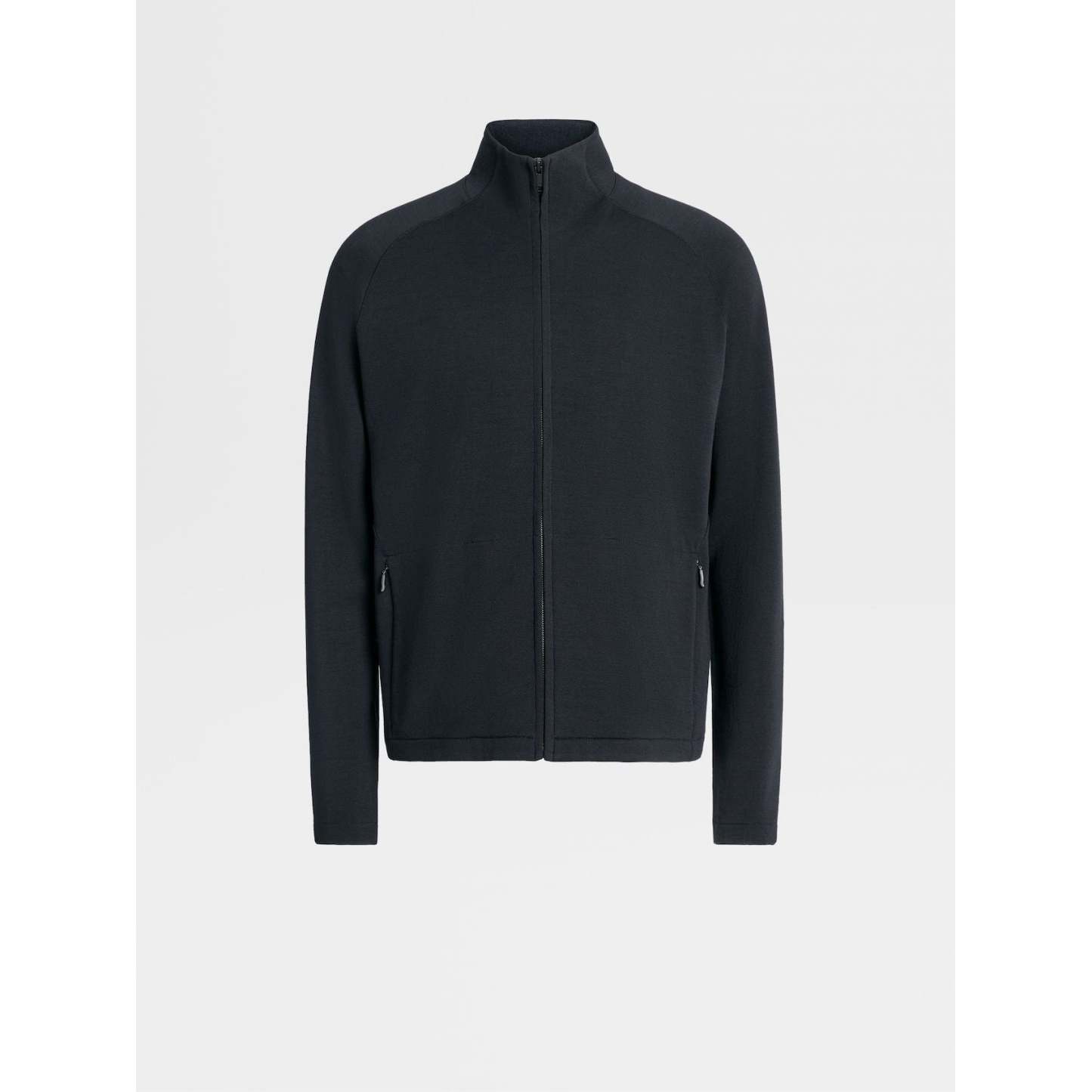 ZEGNA NAVY BLUE TECHMERINO™ WOOL FULL ZIP SWEATSHIRT