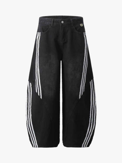 Denim Contrast Striped Stitching Barrel Jeans - 2504