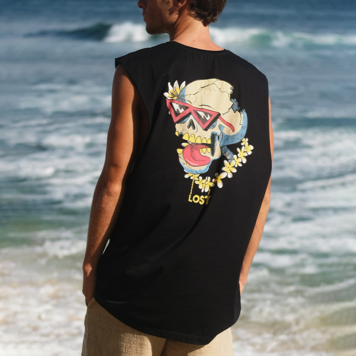 Men's Casual Hawaiian Skull Tank Top