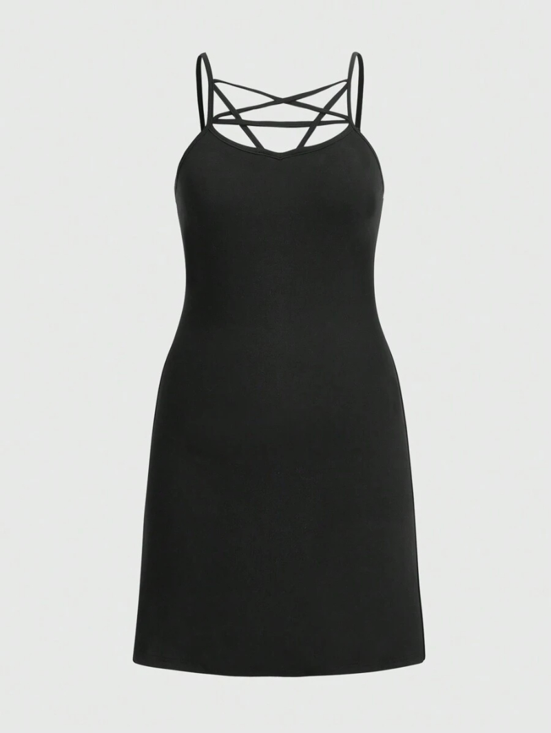 Goth Plus Size Women's Strappy Solid Sundress, Summer Vocation Daily