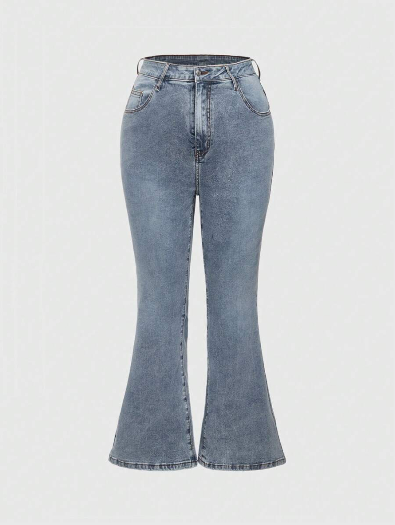 Fairycore Women's Plus Size Fringed Flared Jeans With Star Pattern