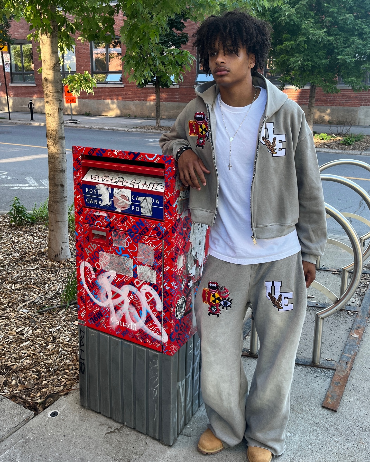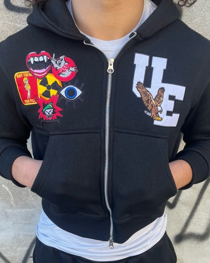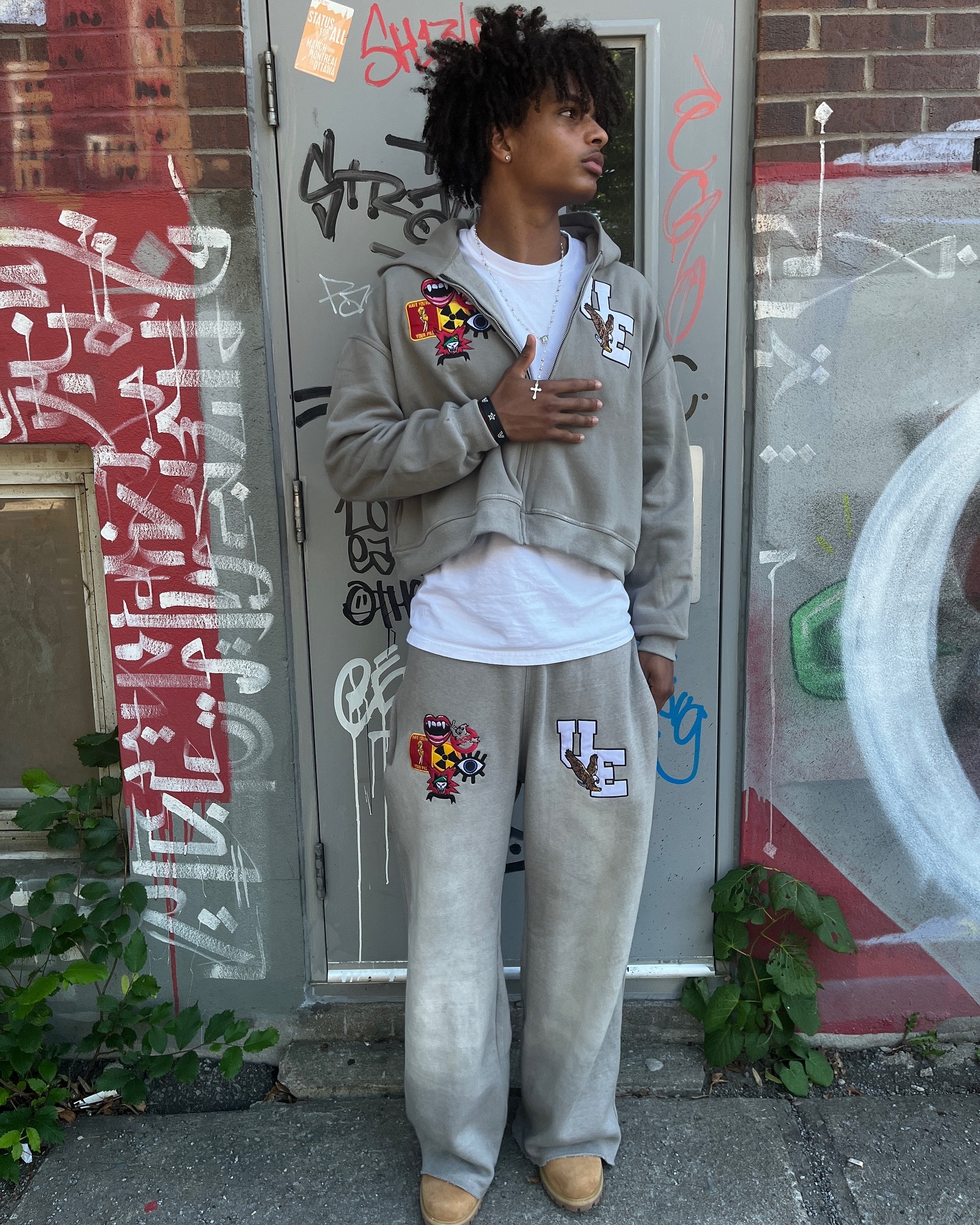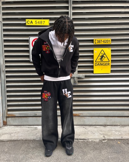 TWO PIECE SET-WORST BLACK&GREY CROOKED ZIP UP HOODIE&FLARE v2