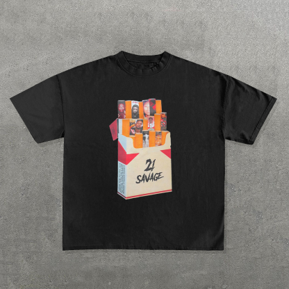 Singer Cigarette Print Short Sleeve T-Shirt