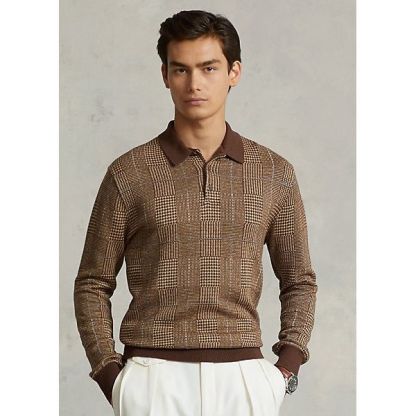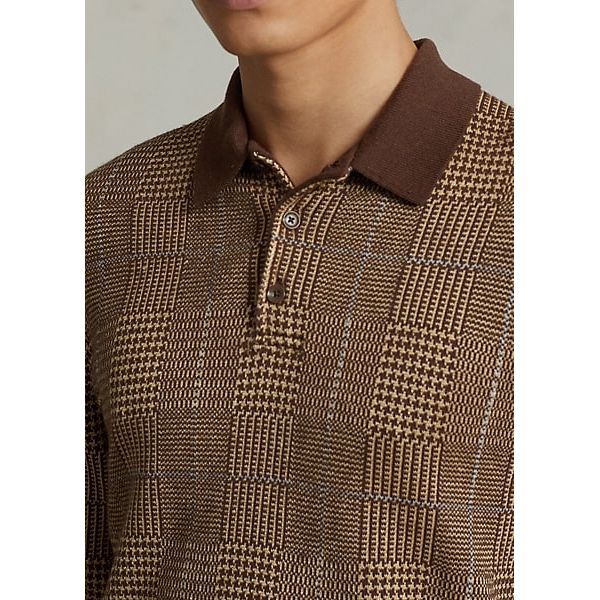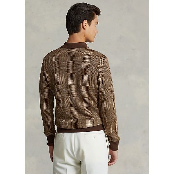 This Polo-collar sweater features a haberdashery-inspired Glen plaid pattern rendered in cotton, linen, and cashmere.