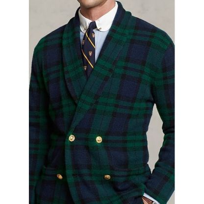 In a luxurious blend of fine wool and cashmere, this blazer cardigan features a plaid pattern inspired by traditional Scottish motifs. It is finished with our signature gold-tone buttons that are engraved with a polo helmet and mallets.