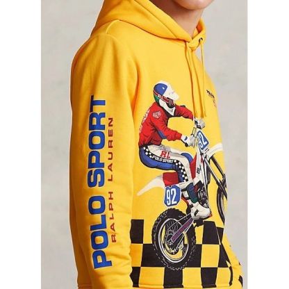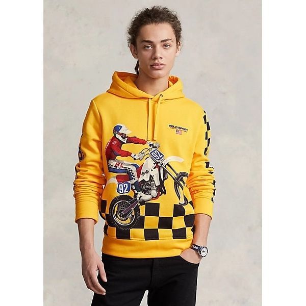 Part of the season's motocross-inspired concept, this unisex cotton-blend fleece hoodie features a rider printed on the front as well as two iterations of the Polo Sport logo. Ralph Lauren partners with Better Cotton™ to improve cotton farming globally. Better Cotton trains farmers to use water efficiently, care for the health of soil and natural habitats, reduce use of the most harmful chemicals and implement the principles of decent work.