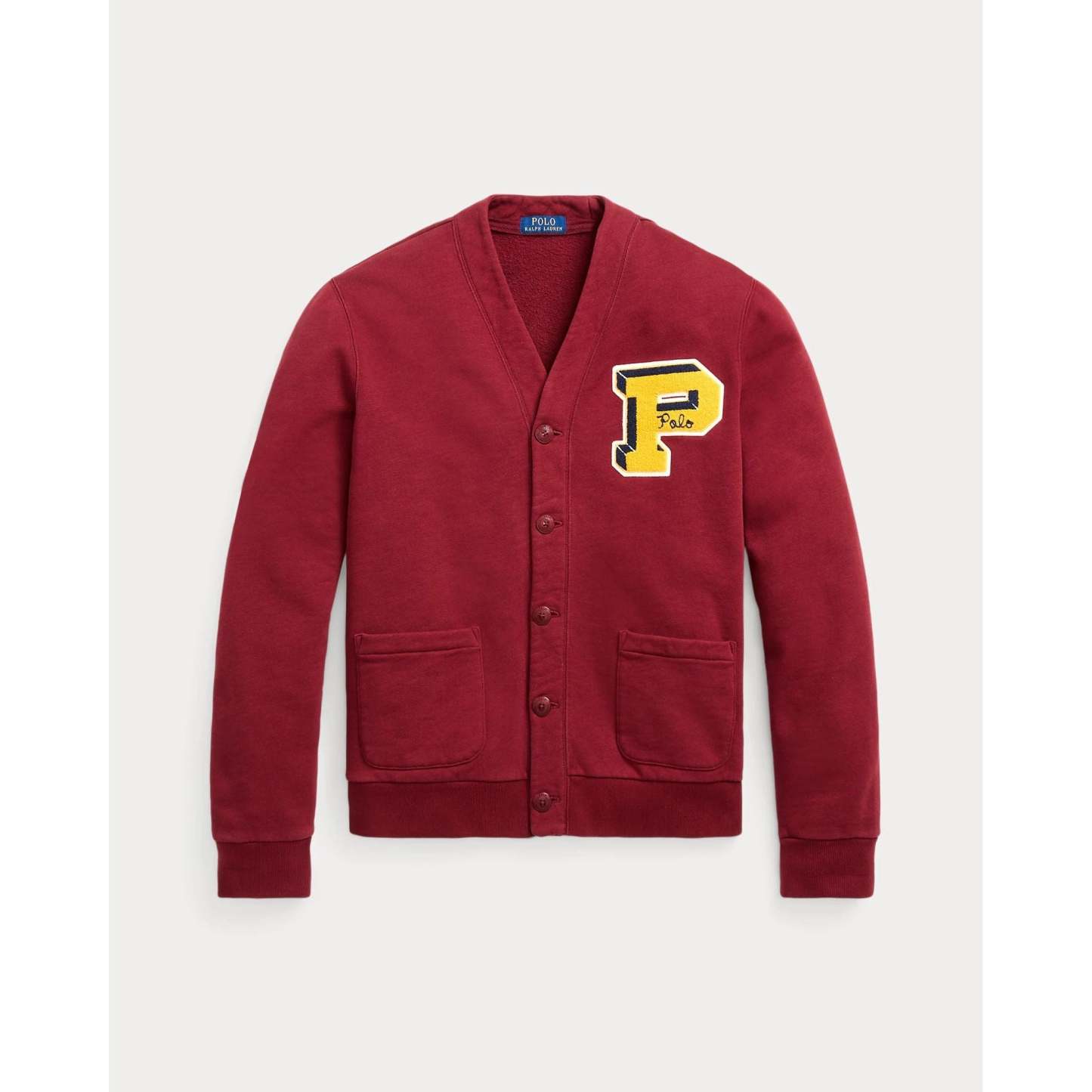 RALPH LAUREN Slub Fleece Letterman Cardigan
