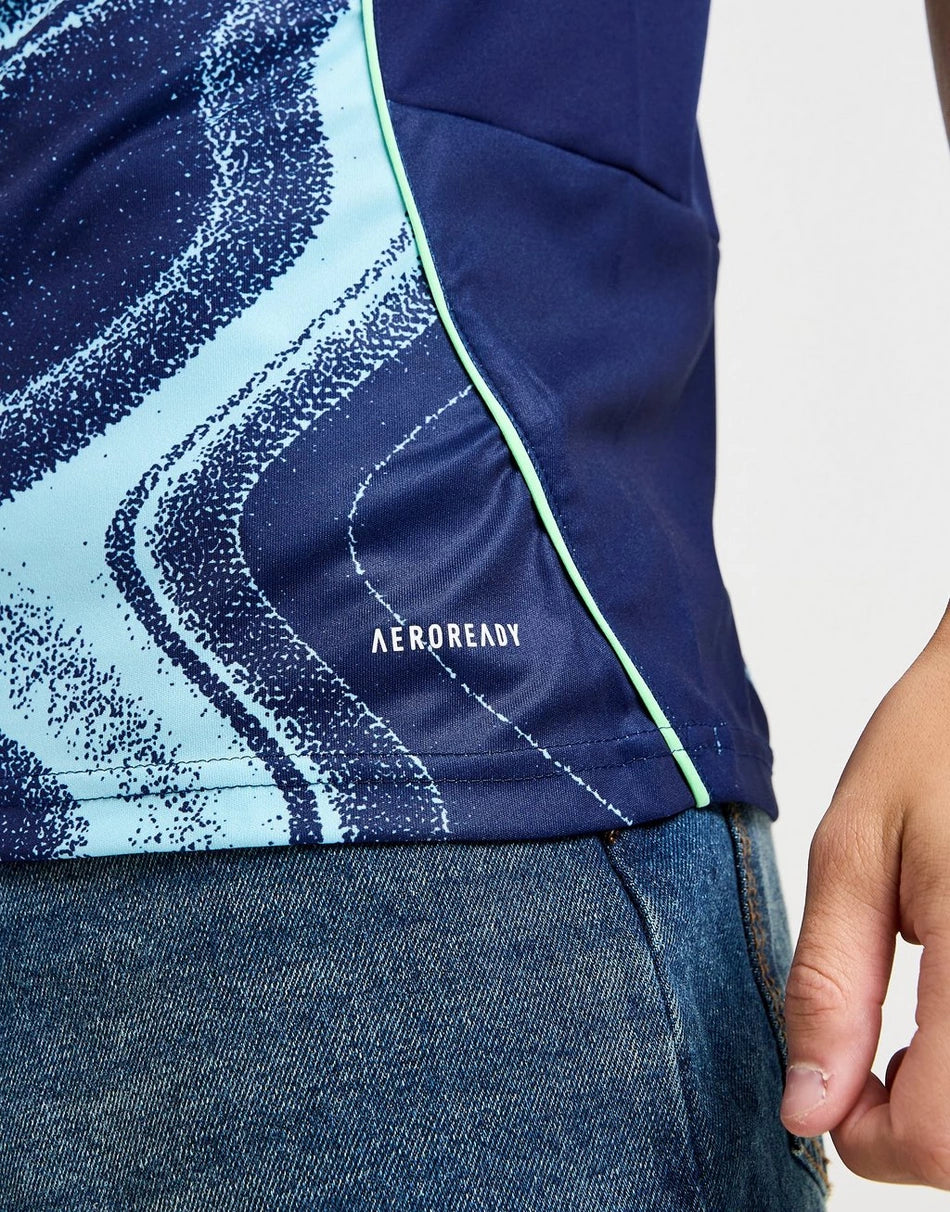 Level up your support for Amsterdam's finest with this men's AFC Ajax 2025/26 Away Shirt from adidas. In a Night Sky colourway with patterning inspired by the city's waterways, this slim-fit shirt is cut from light and breathable recycled polyester for cool comfort. It features short sleeves with a ribbed crew neckline and has built-in mesh panelling for ventilation. With AEROREADY tech to wick away sweat, it's finished up with the Ajax crest and adidas Performance logo. Machine washable | JP1447