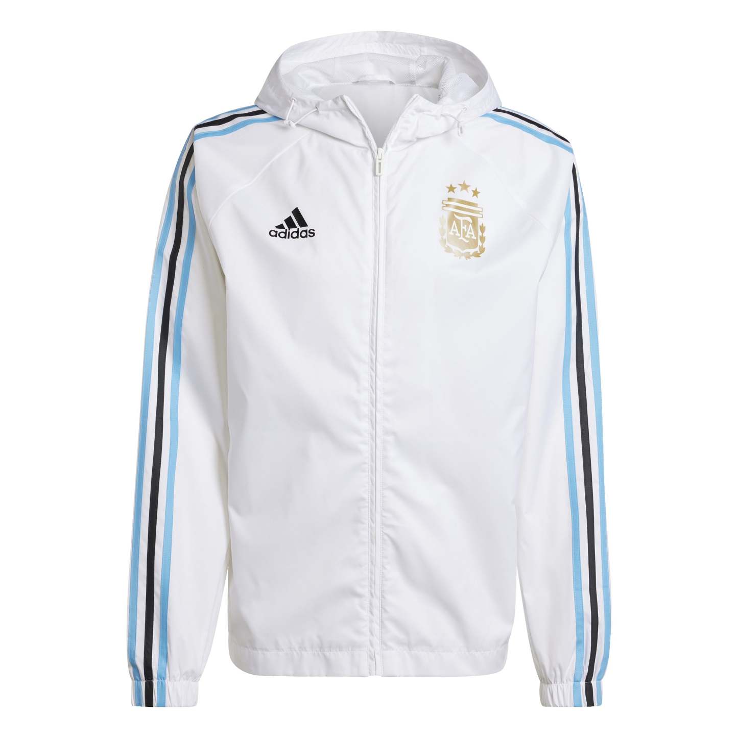 This adidas Argentina DNA Windbreaker is made of lightweight polyester, designed to offer protection against wind and rain while remaining breathable and comfortable. Its sleek, modern look is finished with the Argentina crest on the chest.