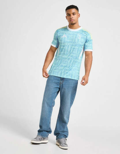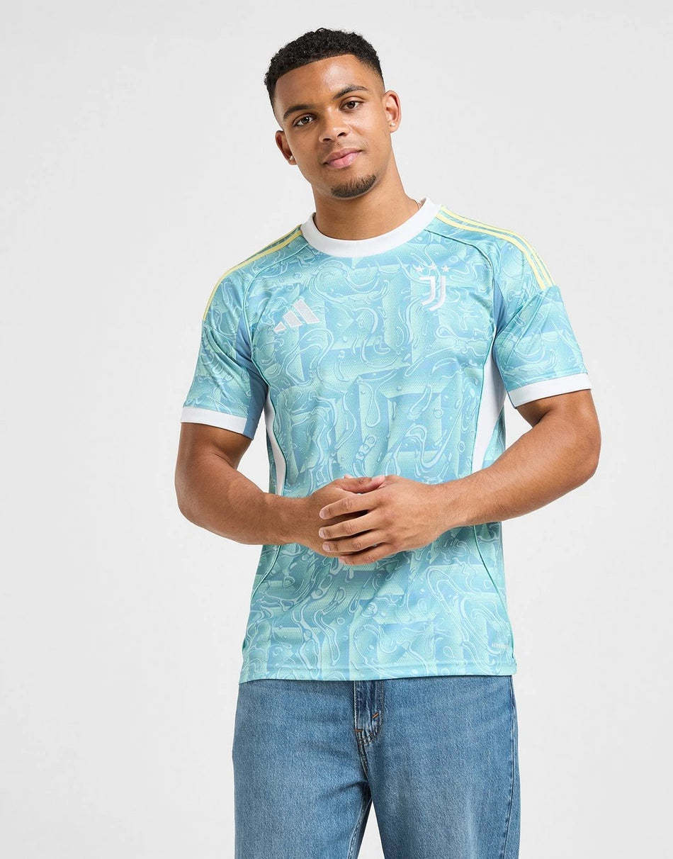 Bring Italian summers to the pitch with this men's Juventus 2025/26 Away Shirt from adidas. In an Ash Blue colourway that's inspired by Turin's flag, this stadium shirt features thick White trims on the crew neckline and short sleeves as well as Pearl Citrine 3-Stripes down the shoulders. The lightweight recycled polyester fabric has a tonal splash print all over and is packed with sweat-wicking AEROREADY tech. Finished off with the Performance logo and the Juventus badge on the chest. Machine washable.
