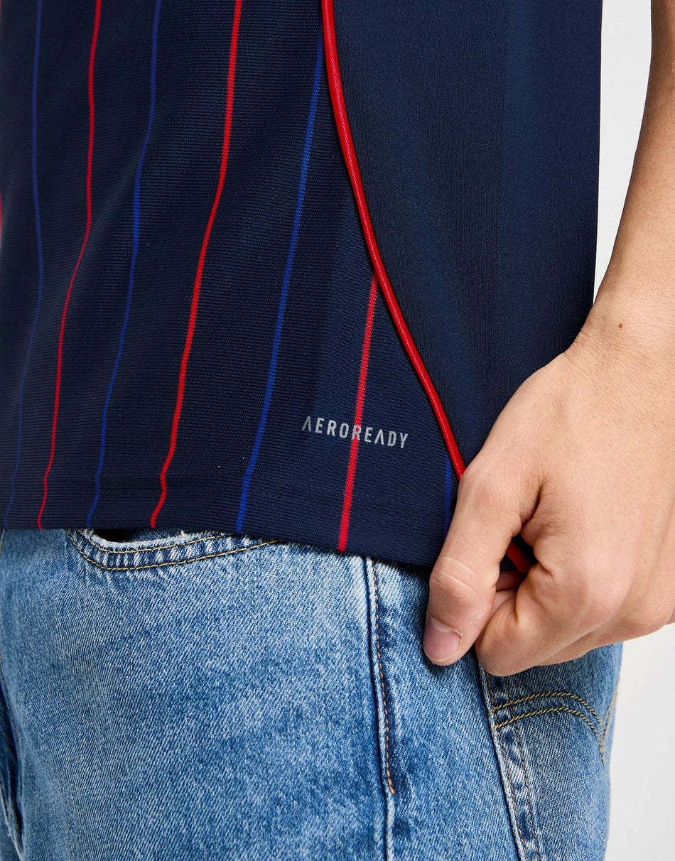 Show your support in this men's Olympique Lyon 2025/26 Away Shirt by adidas. In a Night Indigo colourway, this streamlined shirt is cut from smooth, breathable recycled polyester. It has a Henley collar and short sleeves, with AEROREADY tech to wick away sweat. Finished with iconic adidas branding and the legendary club badge to the chest. Machine washable.